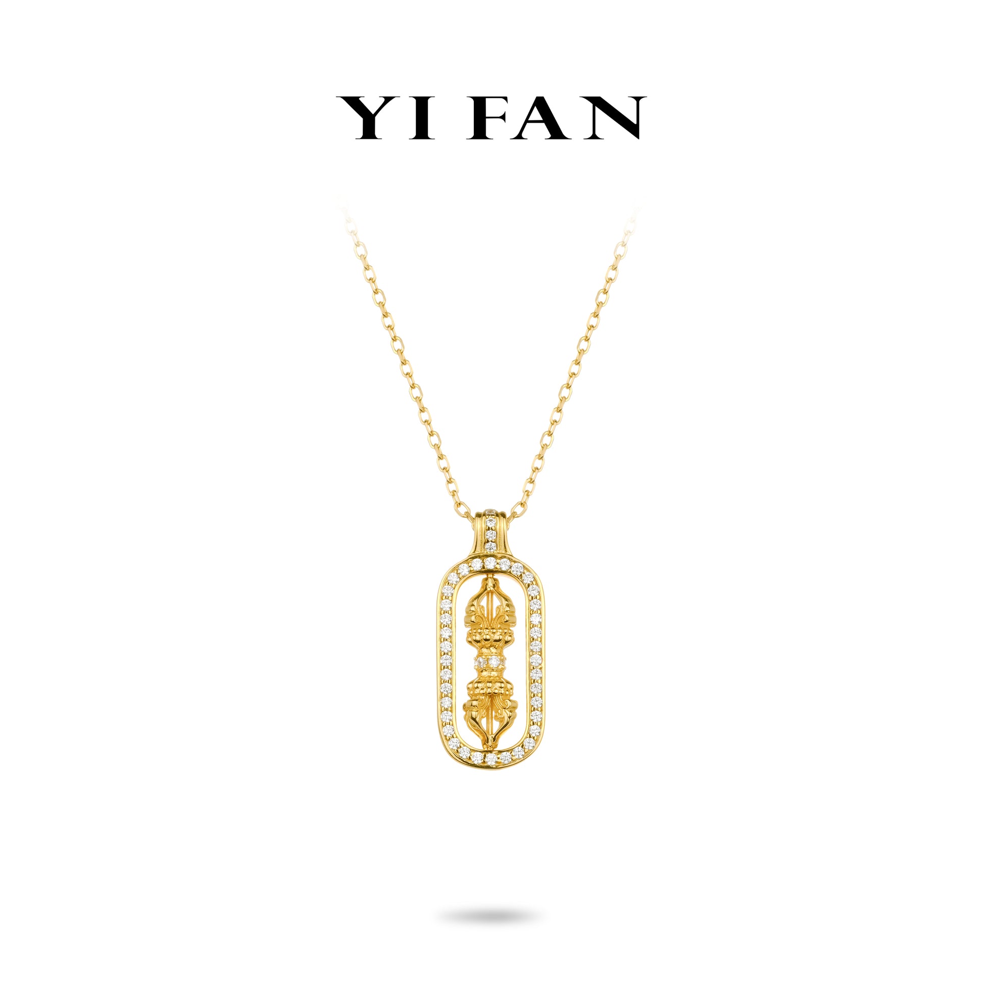 Golden "Hollowed Vajra Dorje Pestle" delicate Pendant Necklace (Unisex)