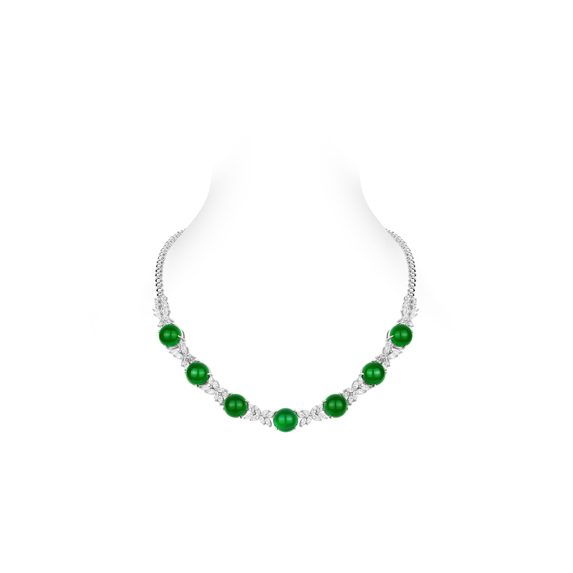 Modern Green jade "Legendary luminous pearls" Tennis Necklace.