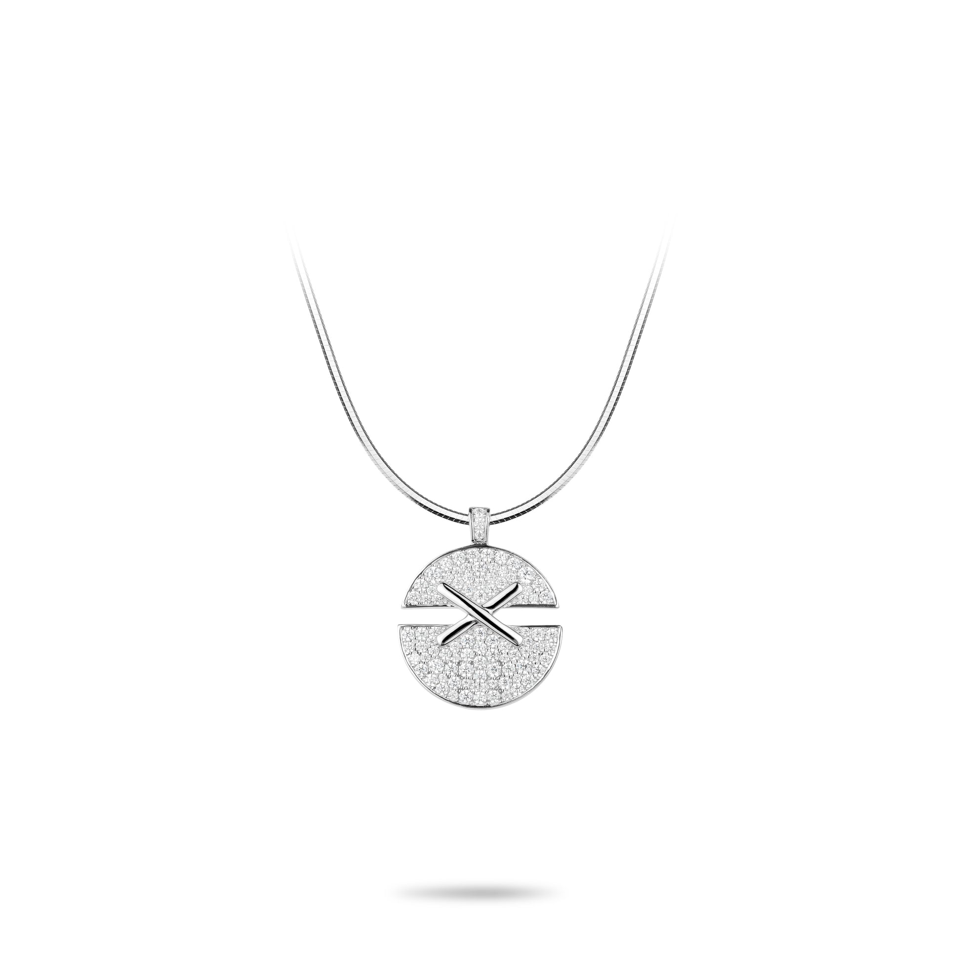 Modern "X Disc" delicate Pendant Necklace.