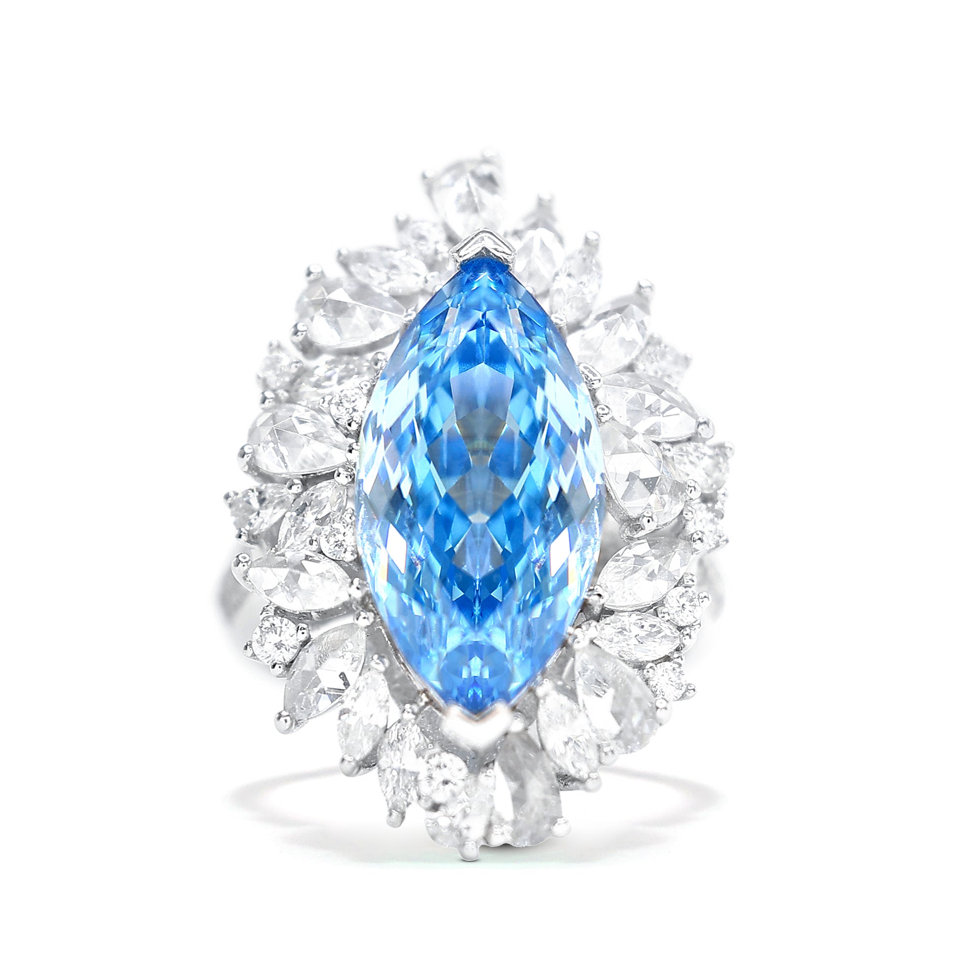 Aquamarine color collection: Luxury "Blue Marquise Frost Flower" Ring