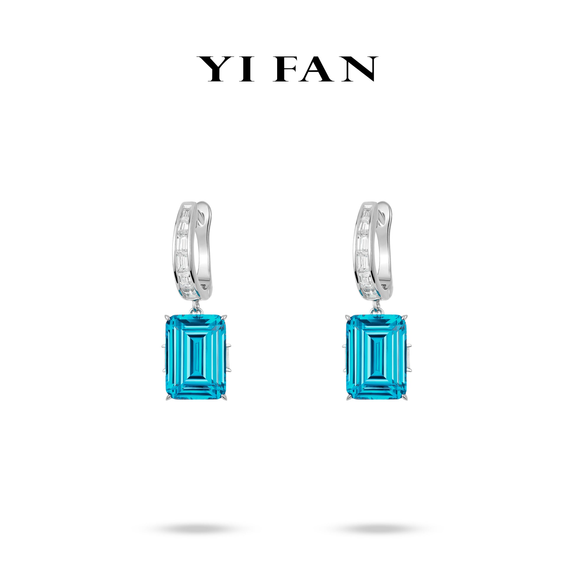 Modern "Sea Blue Emerald-cut Cubes" detailed Dangle Earrings.