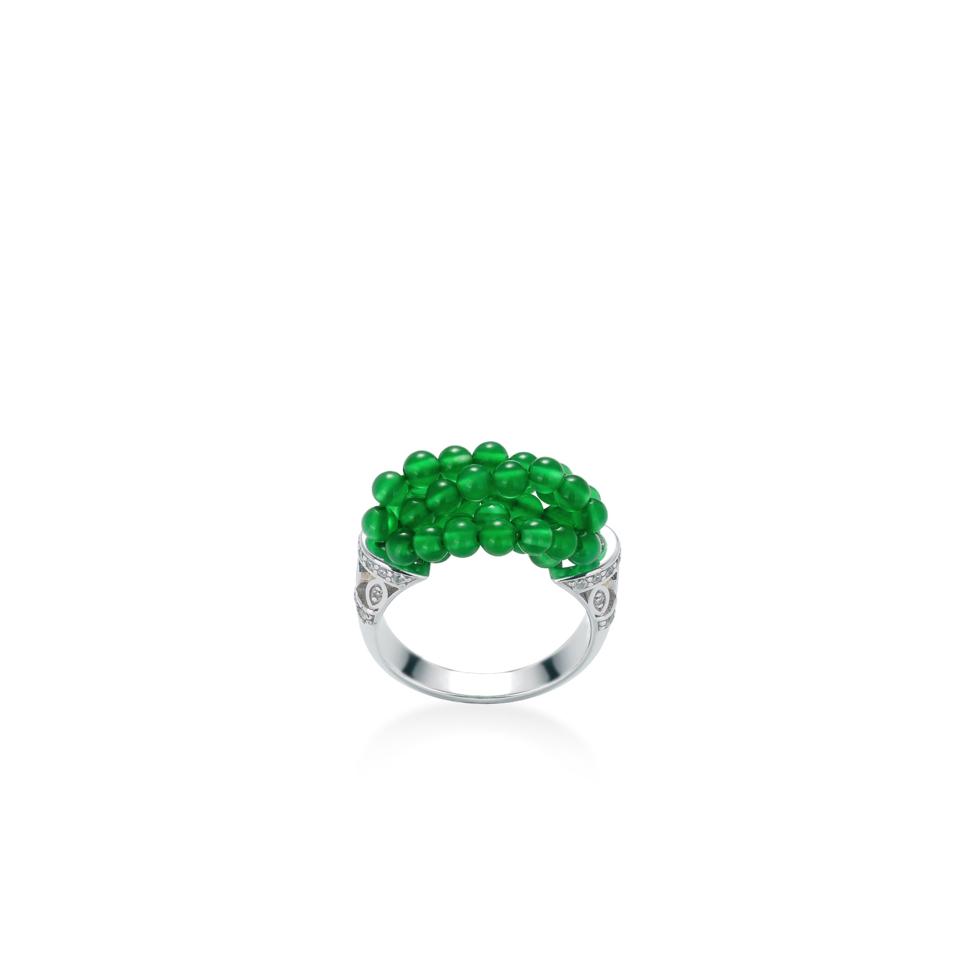 Artistic Green chalcedony beads "Modern Inwind" Ring