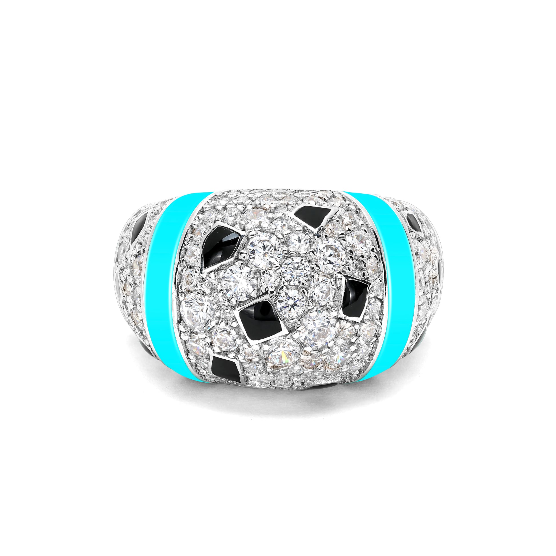 Handmade Blue and Black enamel Leopard Pattern Personality Ring, with eco-friendly artificial diamonds in mircro-setting.