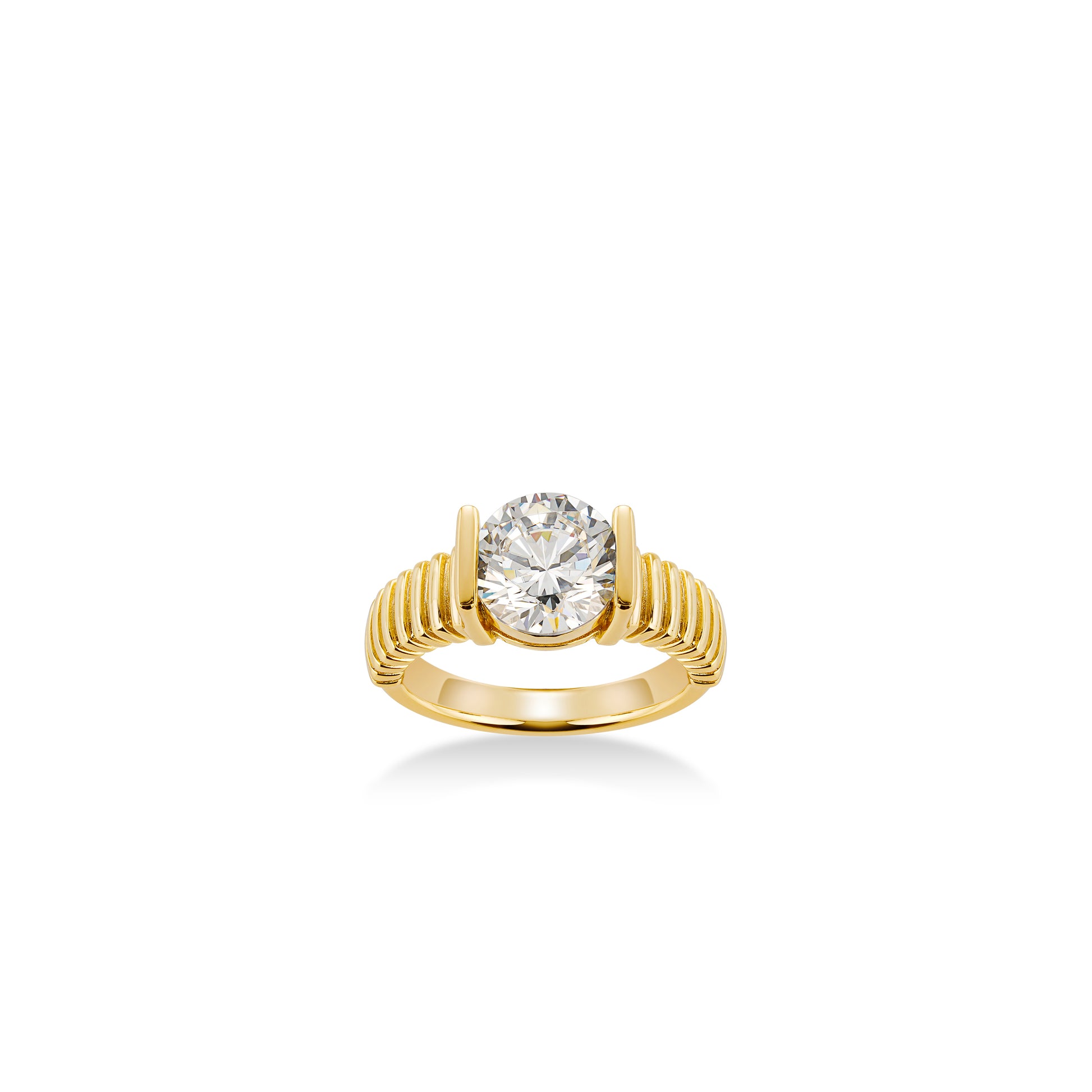 Golden time collection: Modern Brilliant-cut detailed wide band Ring
