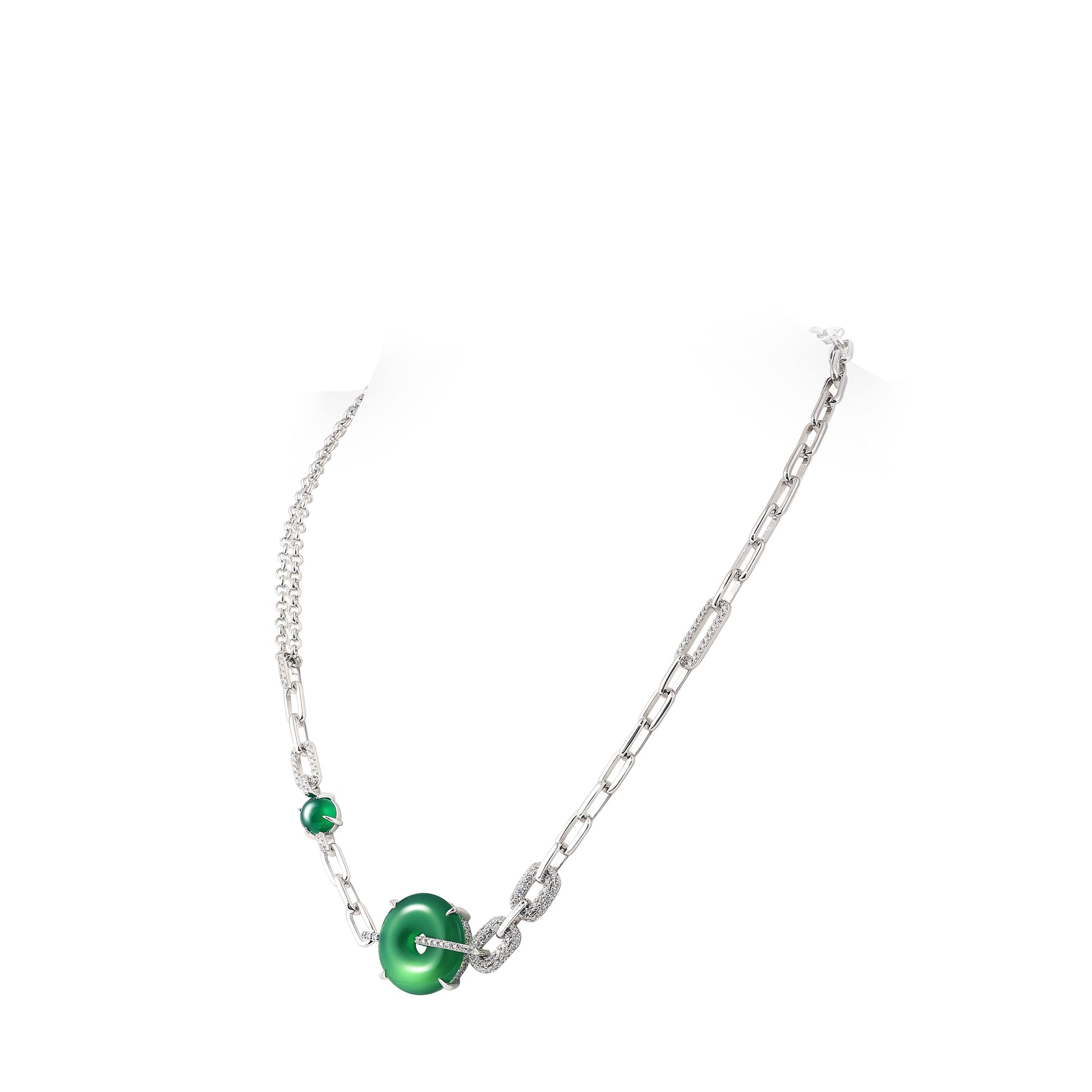 Green jadeite/chalcedony Safety Buckle "Ping An Kou" double stones modern necklace