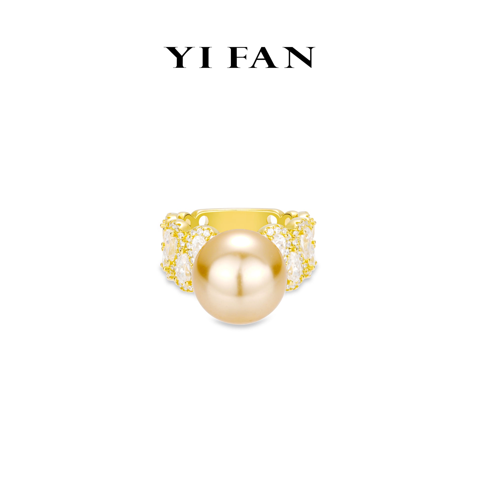 Modern "Legendary Golden Luminous Pearl" detailed wide-band Ring.