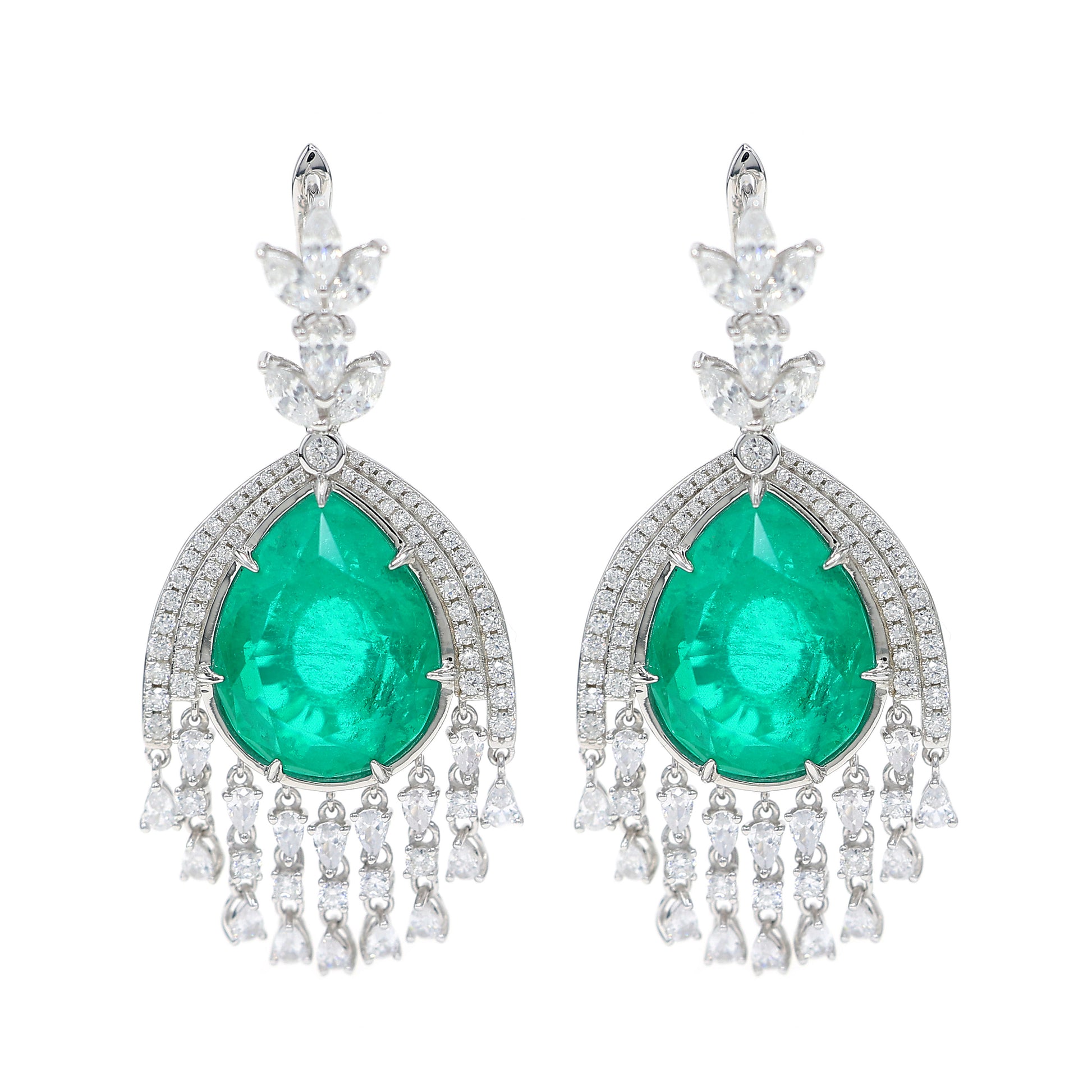 Micro-setting emerald color fancy waterdrop earrings, sterling silver