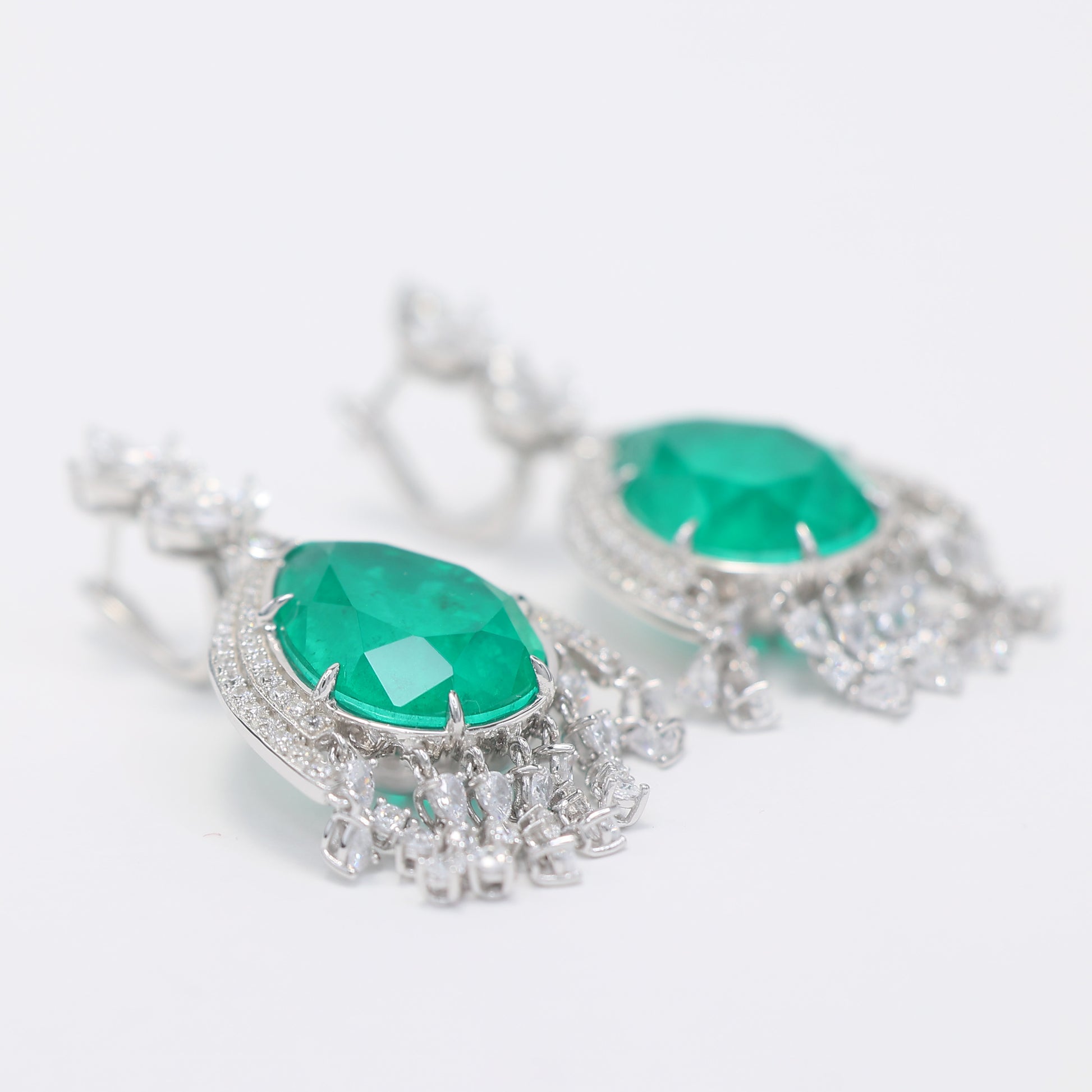 Micro-setting emerald color Lab created stones fancy waterdrop earrings, sterling silver.