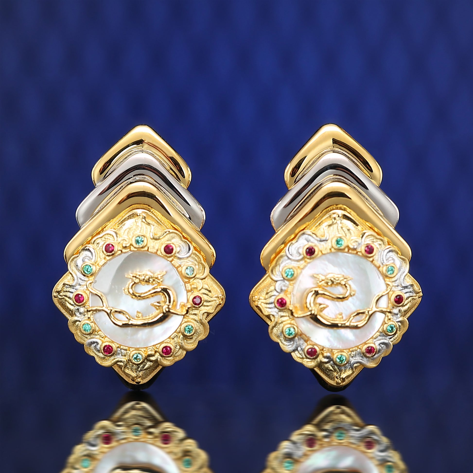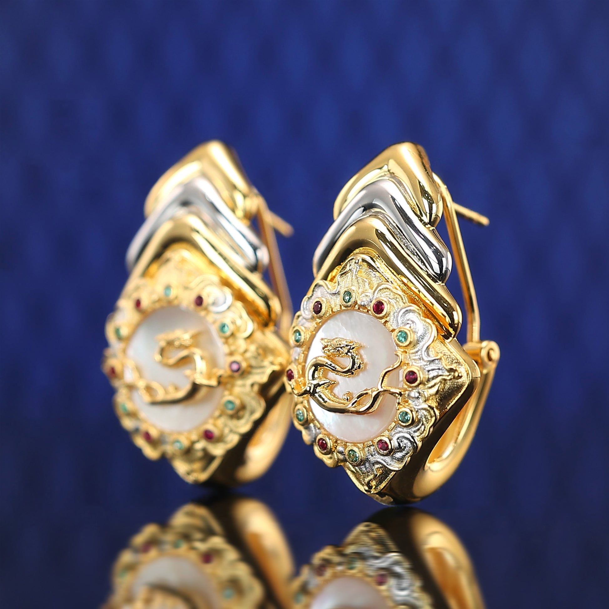 Micro-setting fancy Lab created stones dragon in the sky earrings, sterling silver