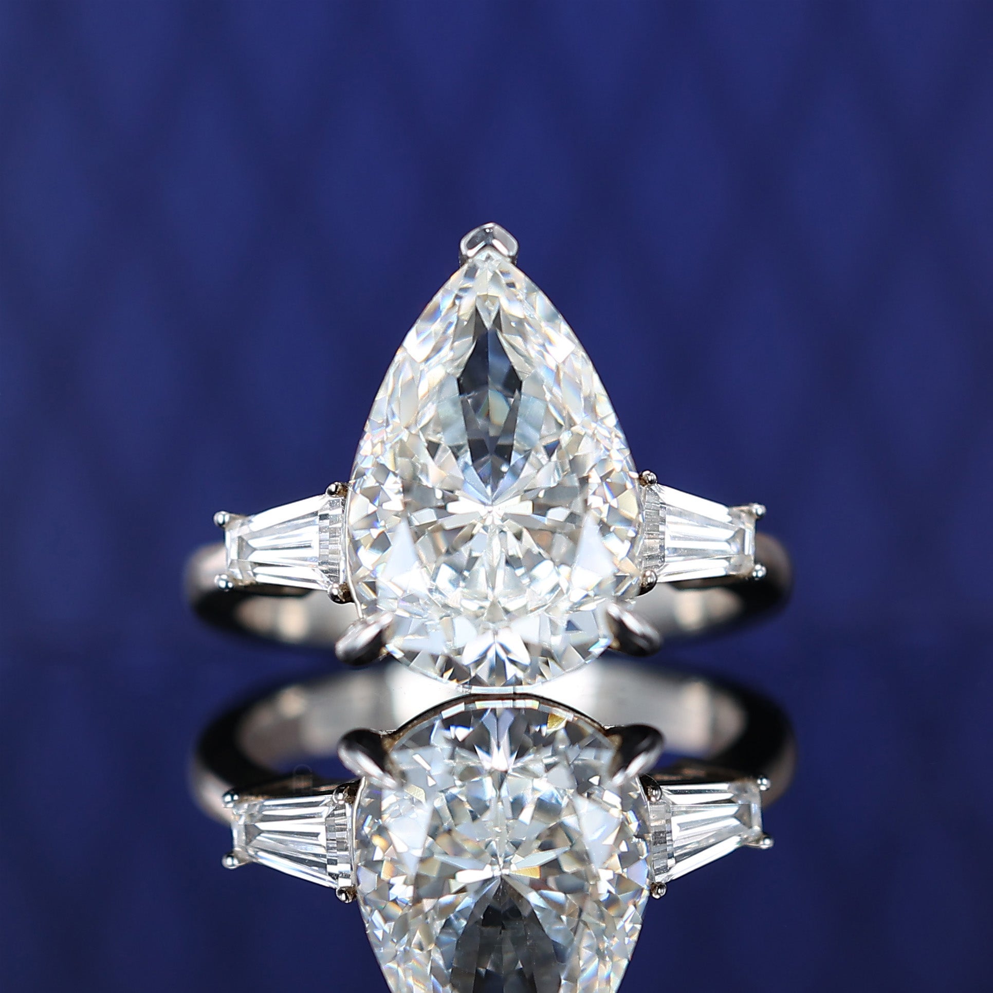 Micro-setting G color Lab created stones waterdrop 3 stones ring sterling silver.