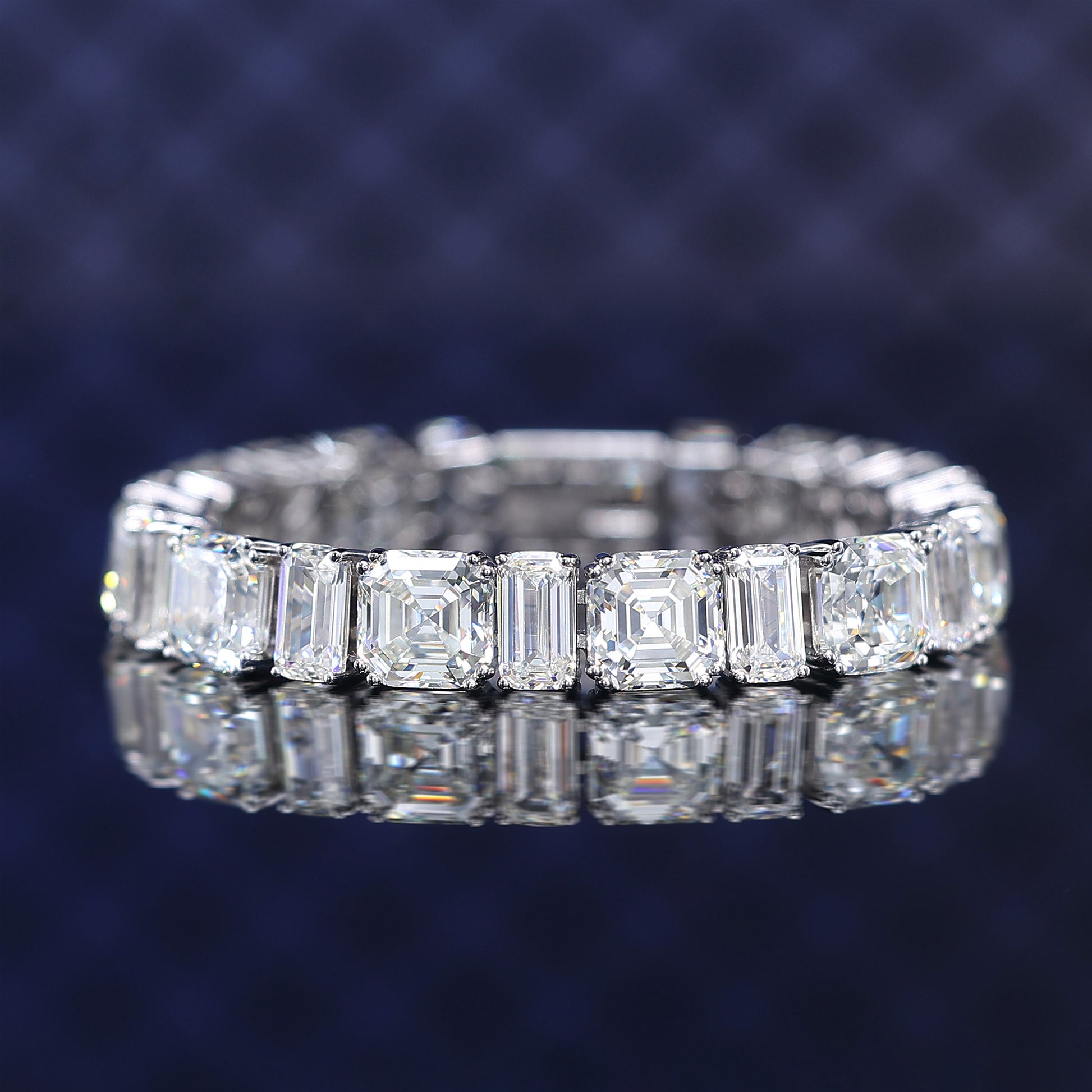 Micro-setting Lab created stones All rivers run into sea bracelet, sterling silver.