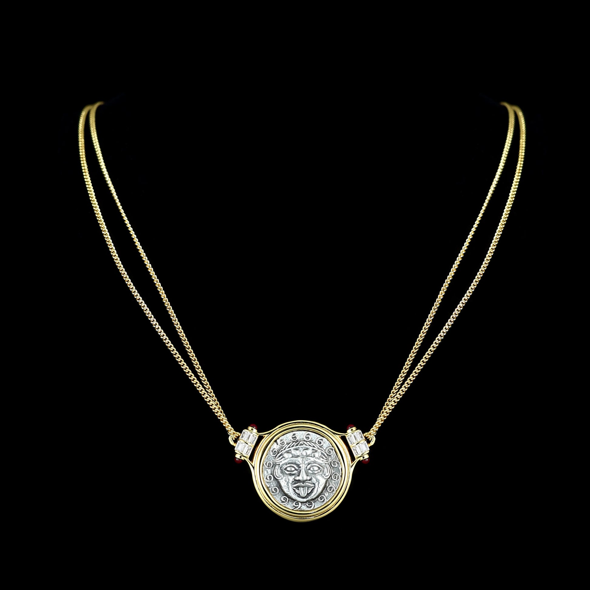Micro-setting two-sided ancient coin Medusa Double chain necklace, sterling silver.