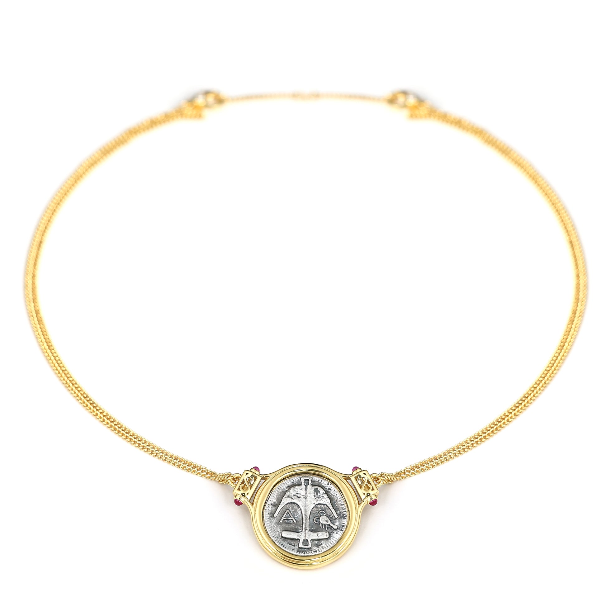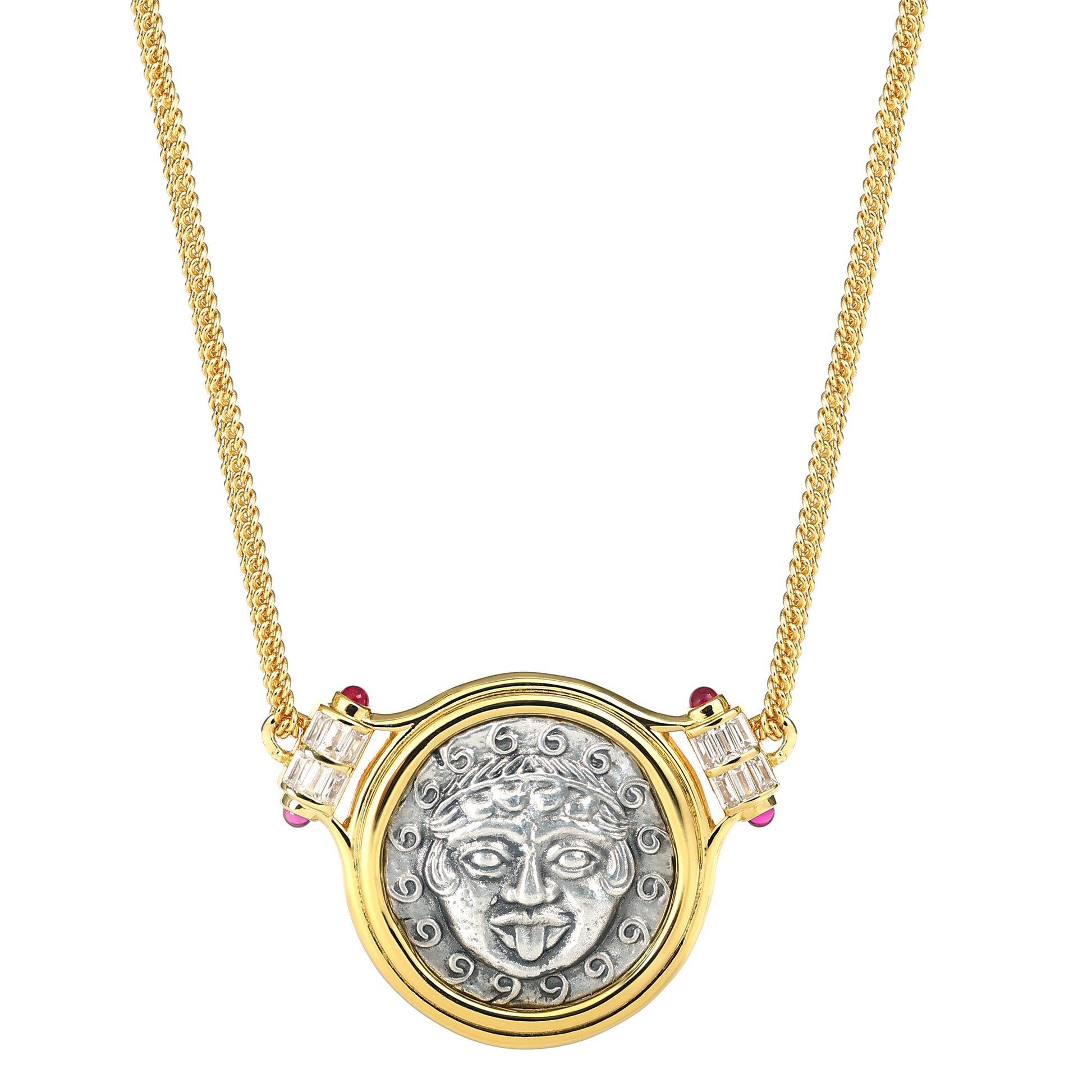 Micro-setting two-sided ancient coin Medusa Double chain necklace, sterling silver