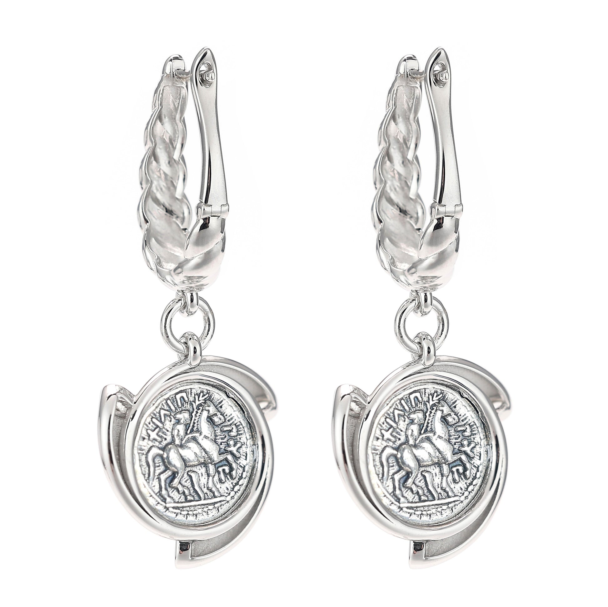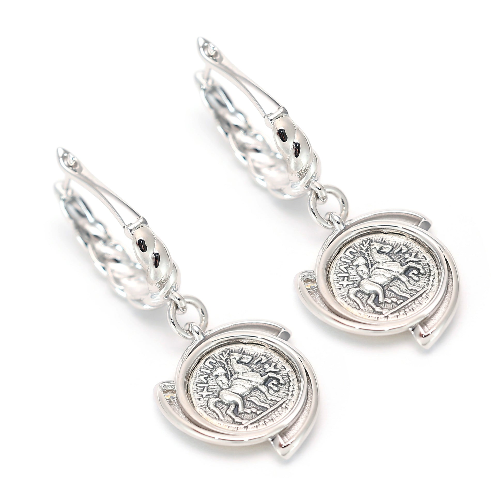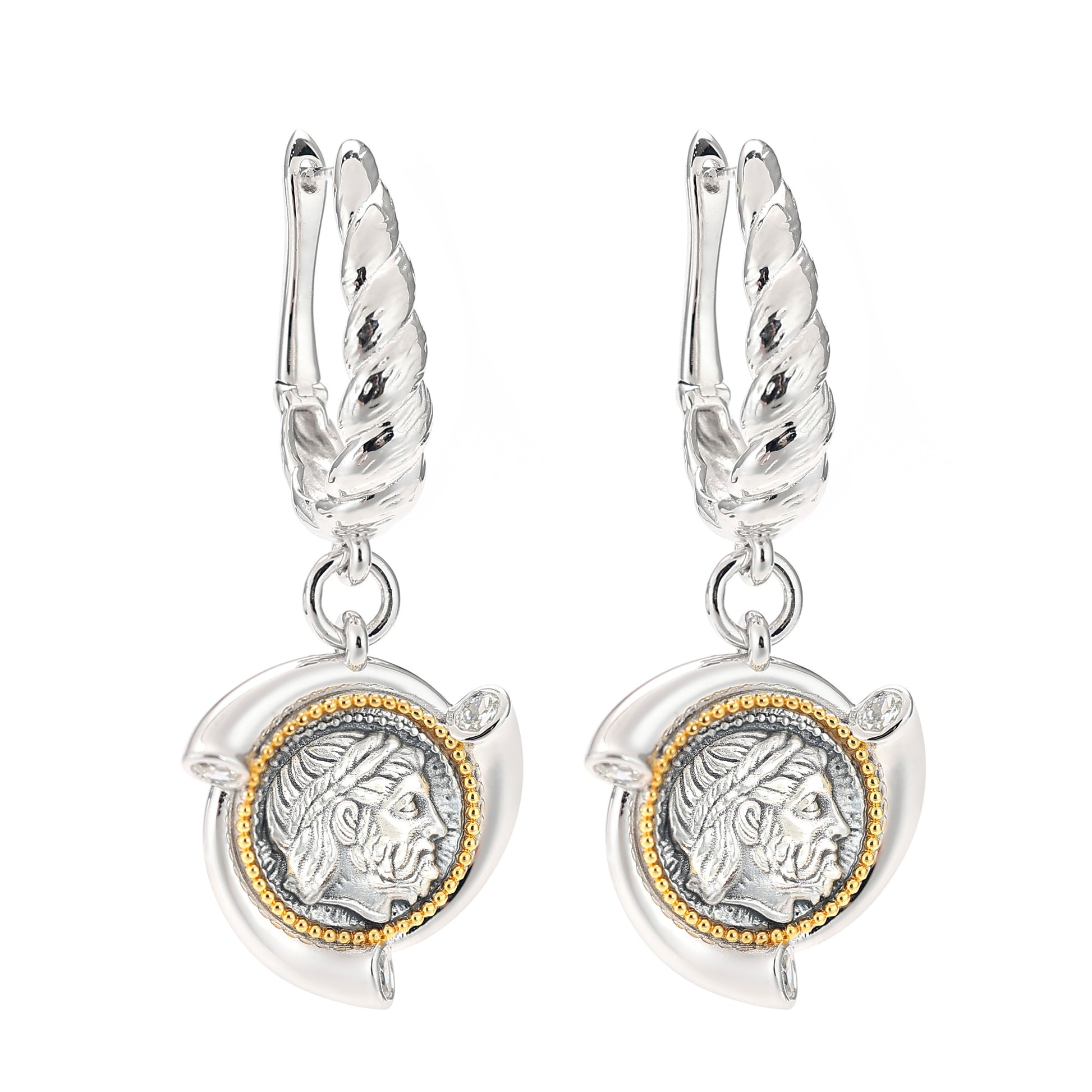 Micro-setting two-sided ancient coin the king of the gods Zeus earrings, sterling silver