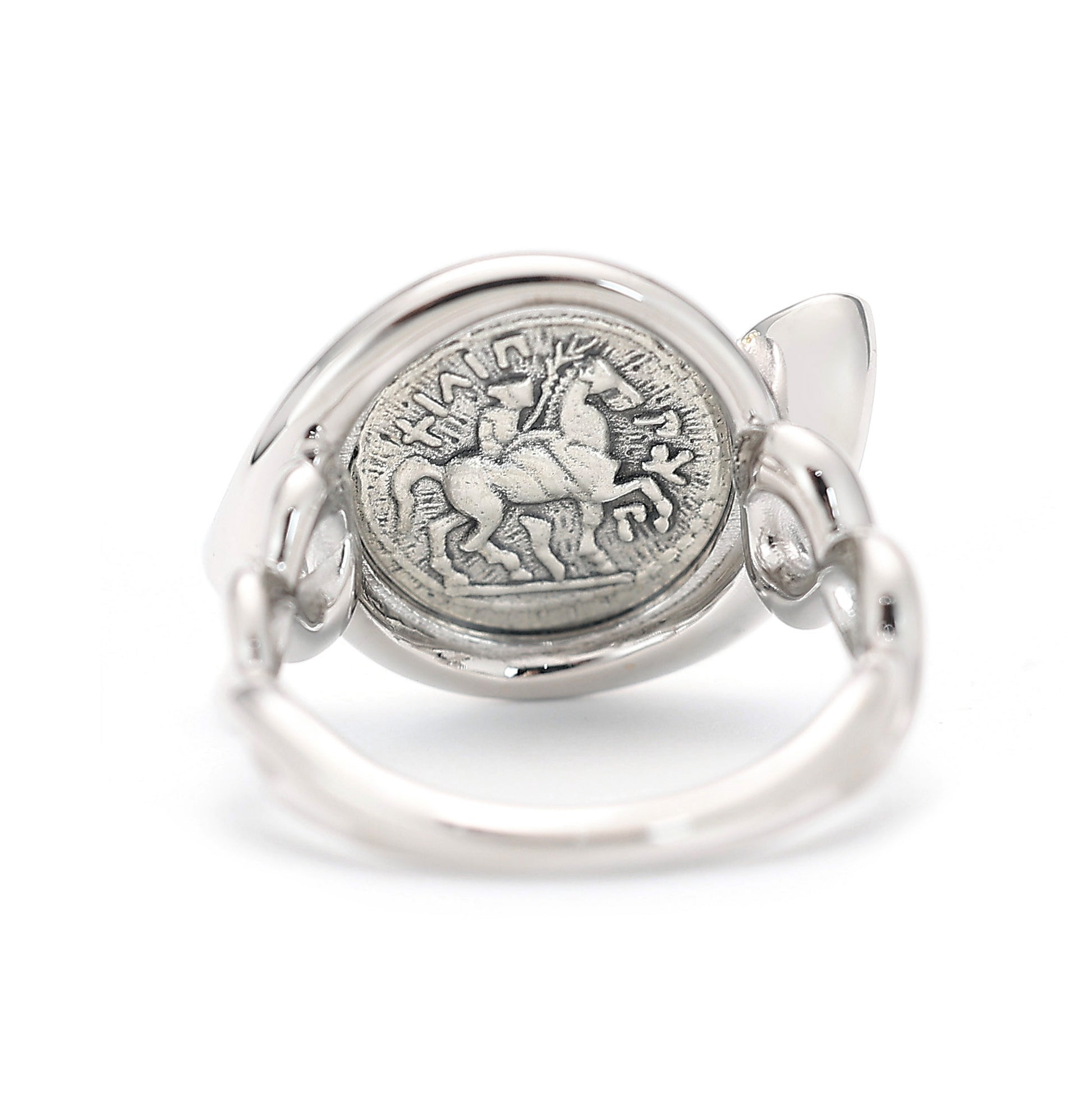 Micro-setting two-sided ancient coin the king of the gods Zeus ring, sterling silver