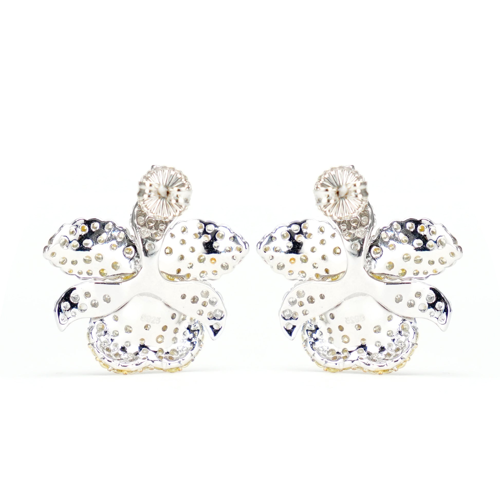 Only 1 Micro-setting yellow color lab created stones flower earrings, sterling silver.