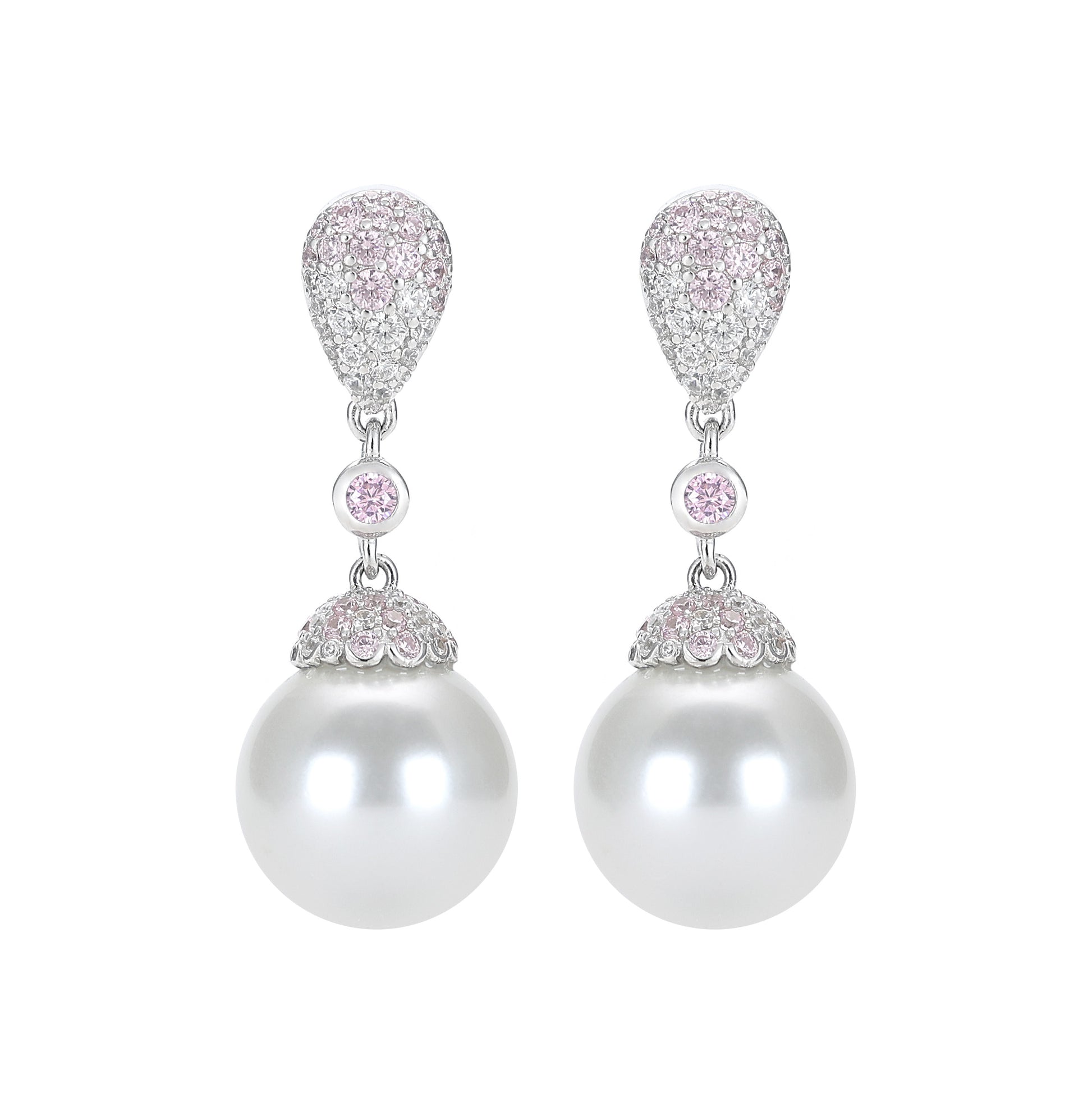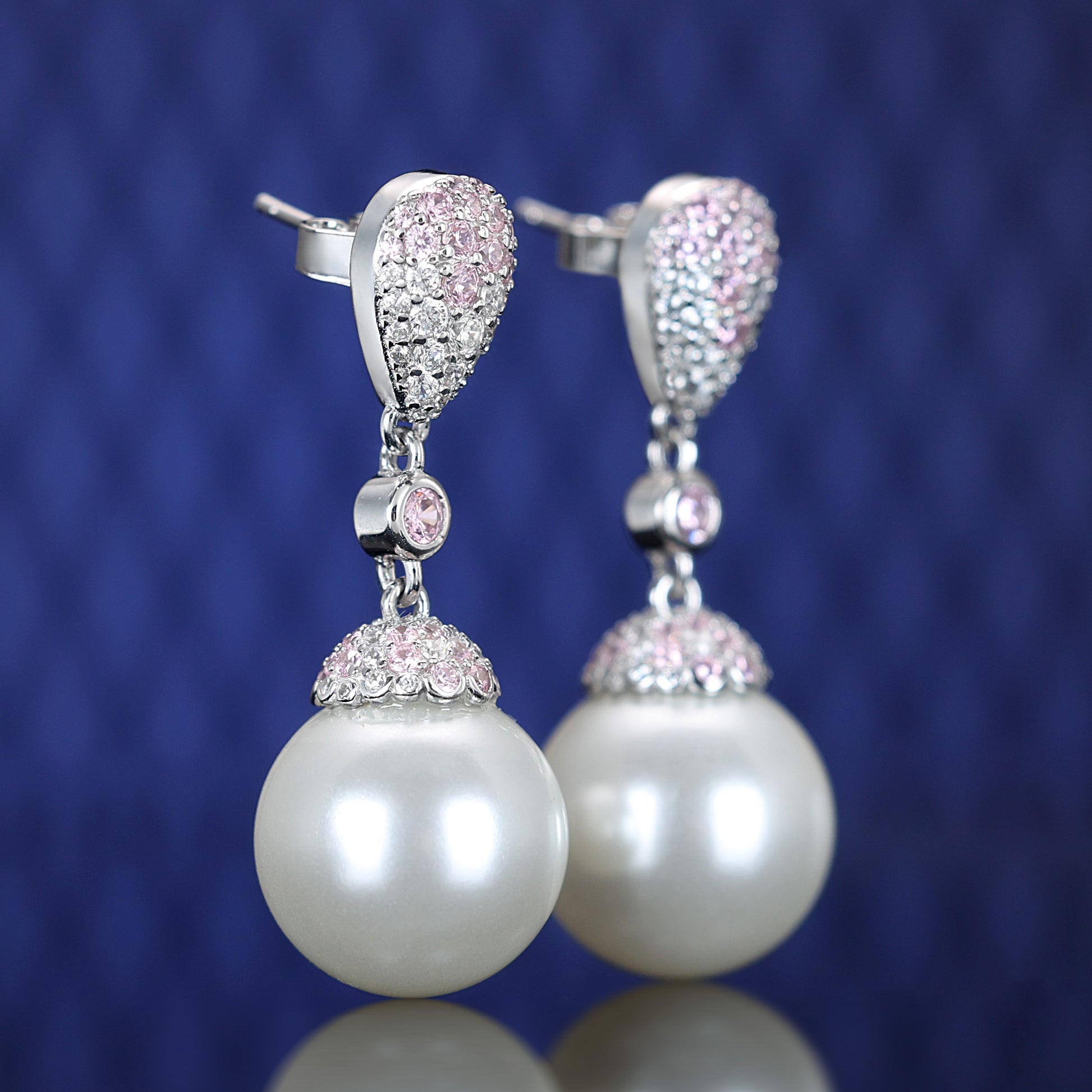 Promotion design Micro-setting Lab created stones Pearl of Venice drop earrings, sterling silver