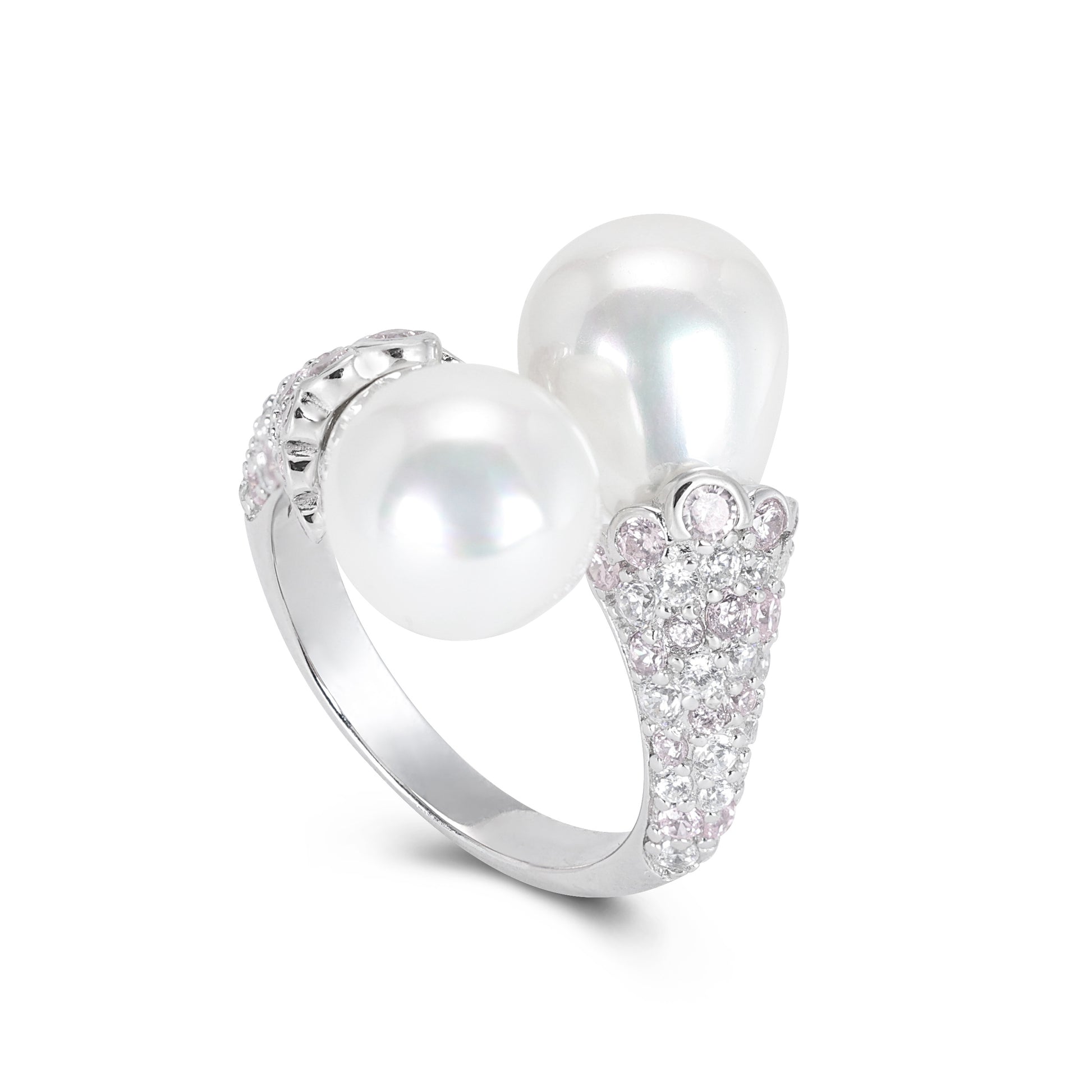 Promotion design Micro-setting Lab created stones Unique detailed Shell pearl ring, sterling silver