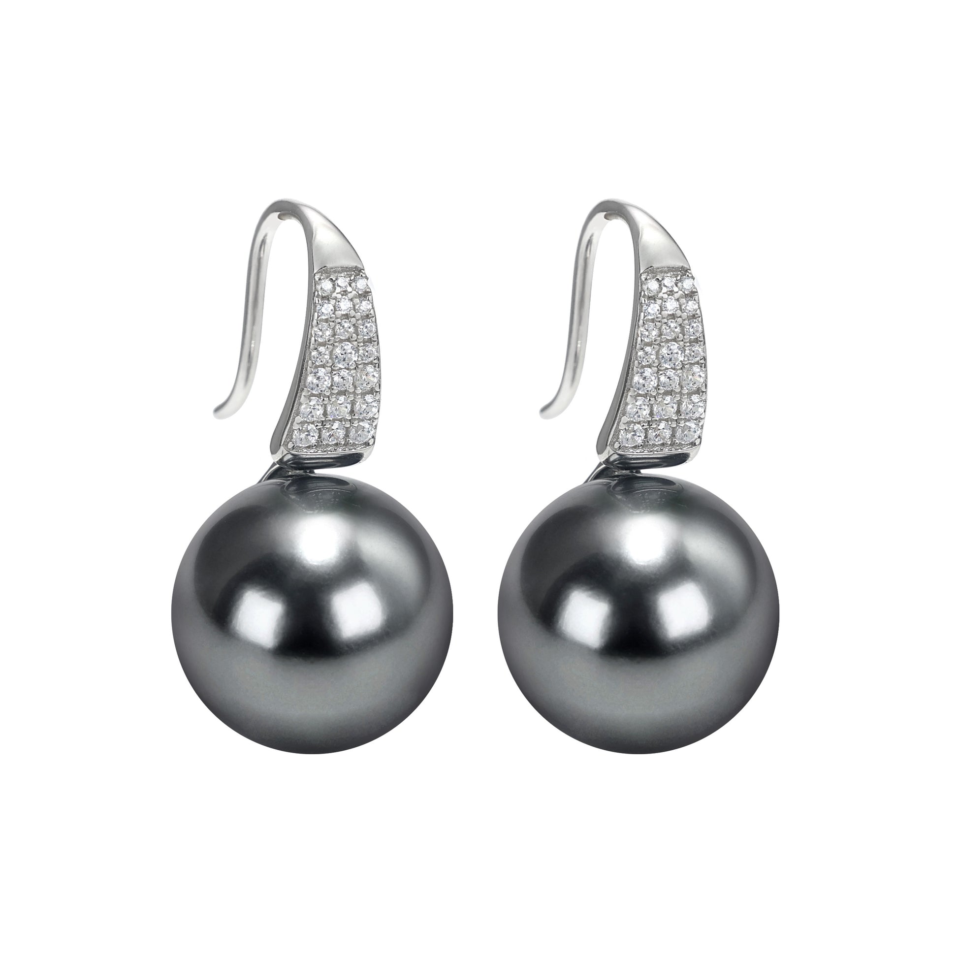 Promotional design Micro-setting Grey shell pearl The Spoon earrings, sterling silver