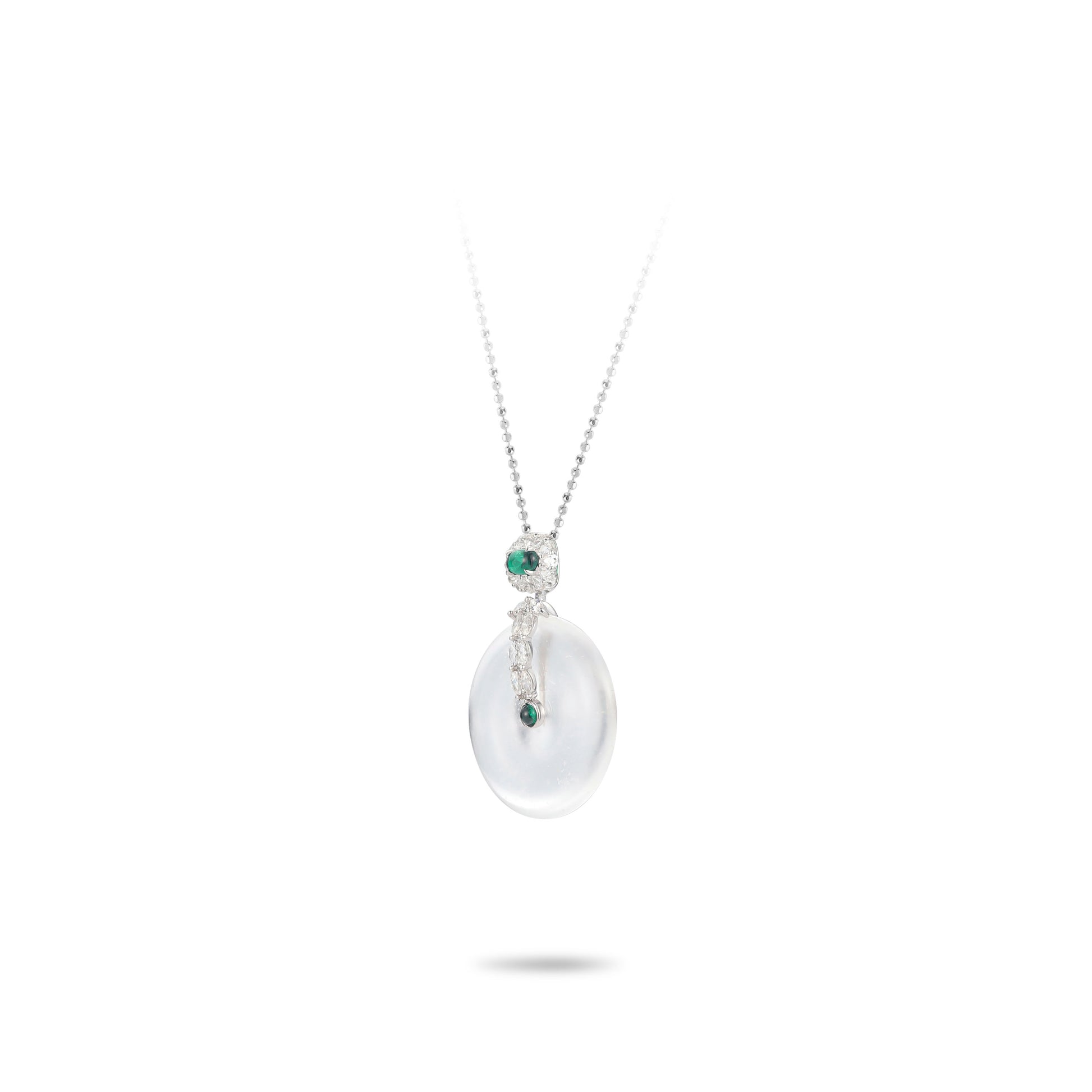 Eco-friendly artificial diamonds and emerald, sterling silver.