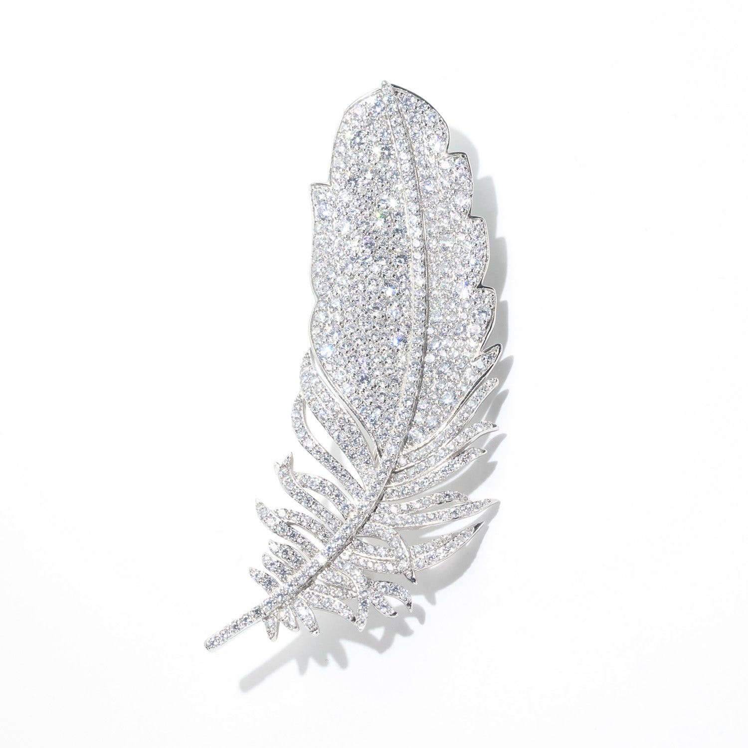 Special offer Customized only 1 piece. Micro-setting White color Lab created stones The feather brooch, sterling silver