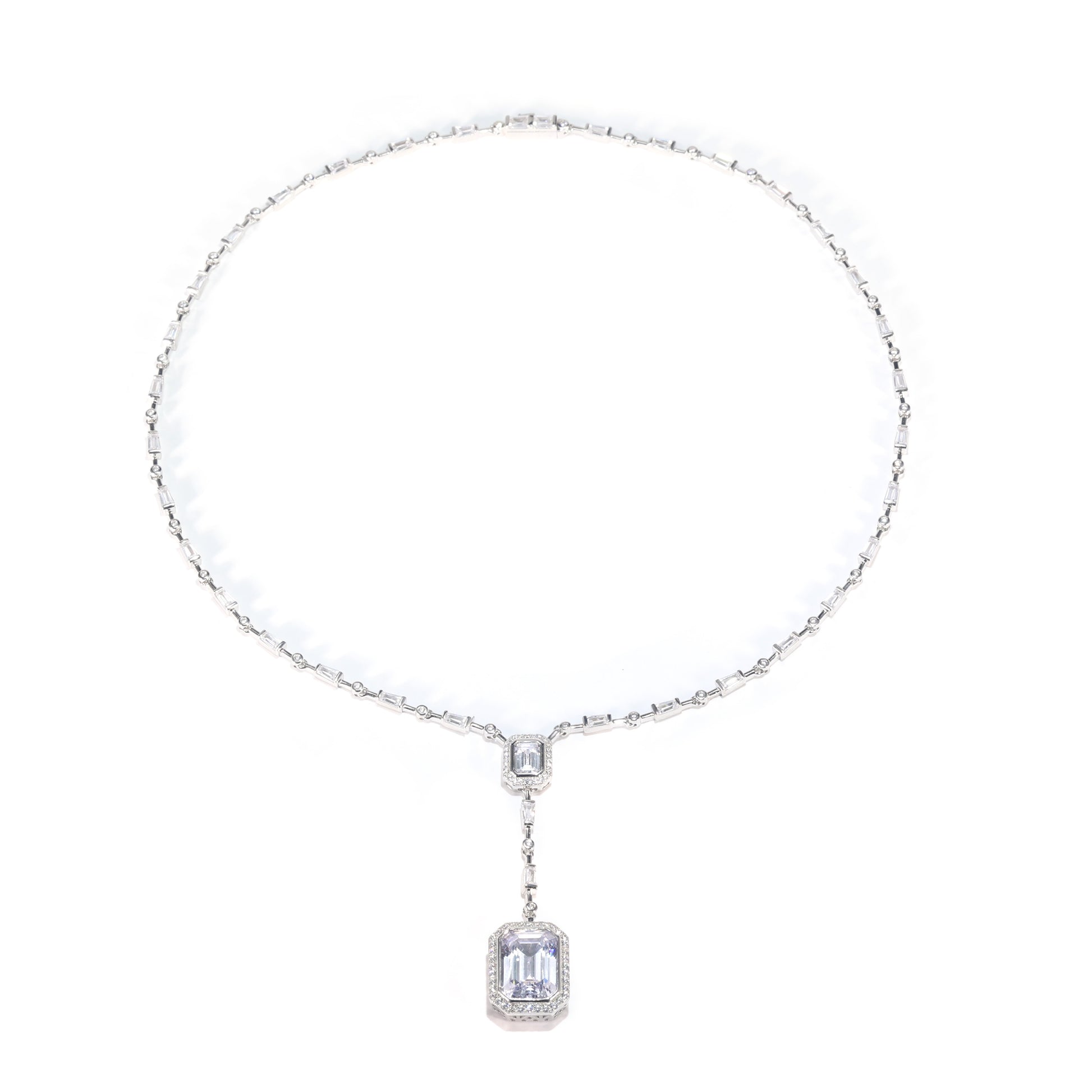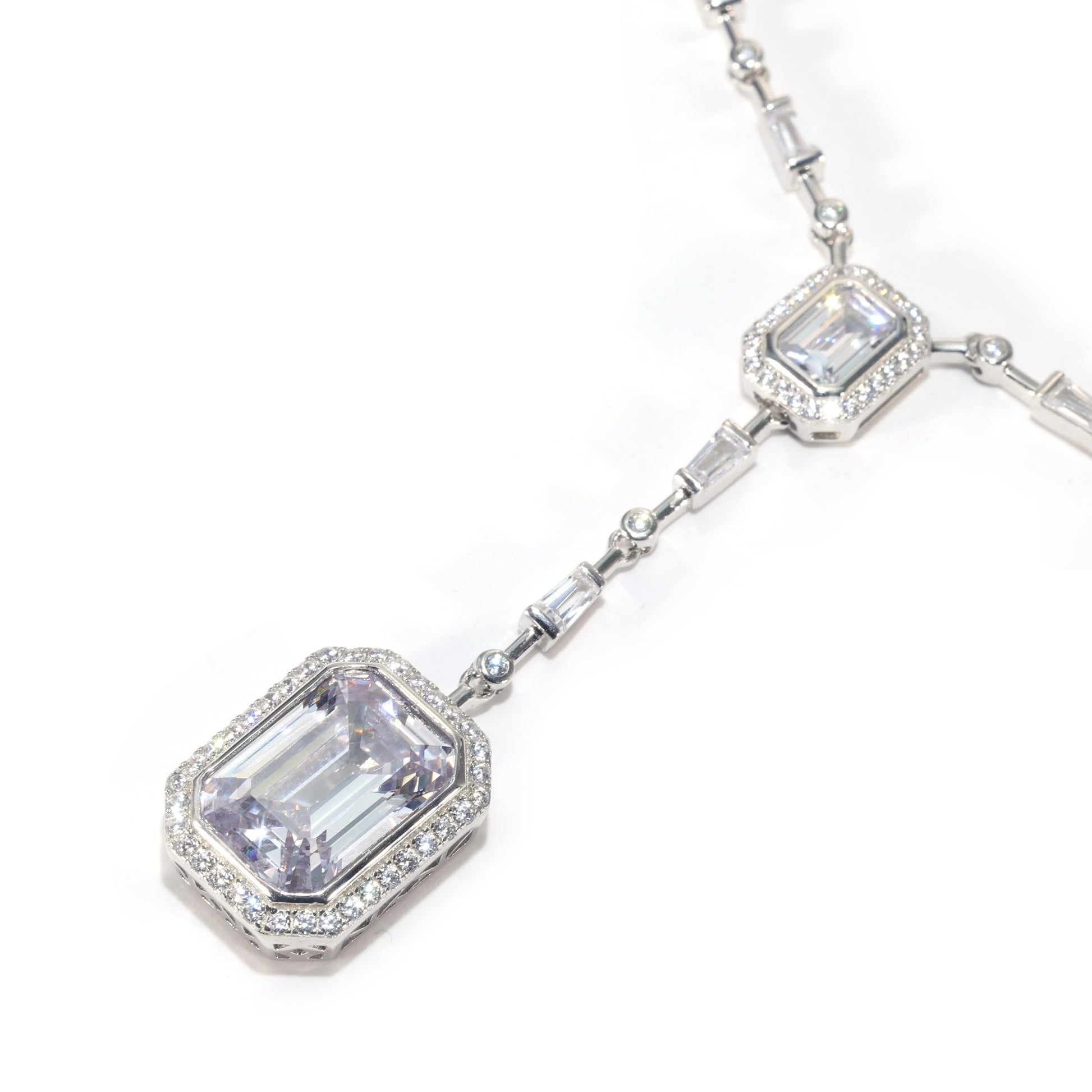 Emerald-cut collection: Modern "Ice Cubes" exquisite Y shape unique Tennis-chain Necklace.