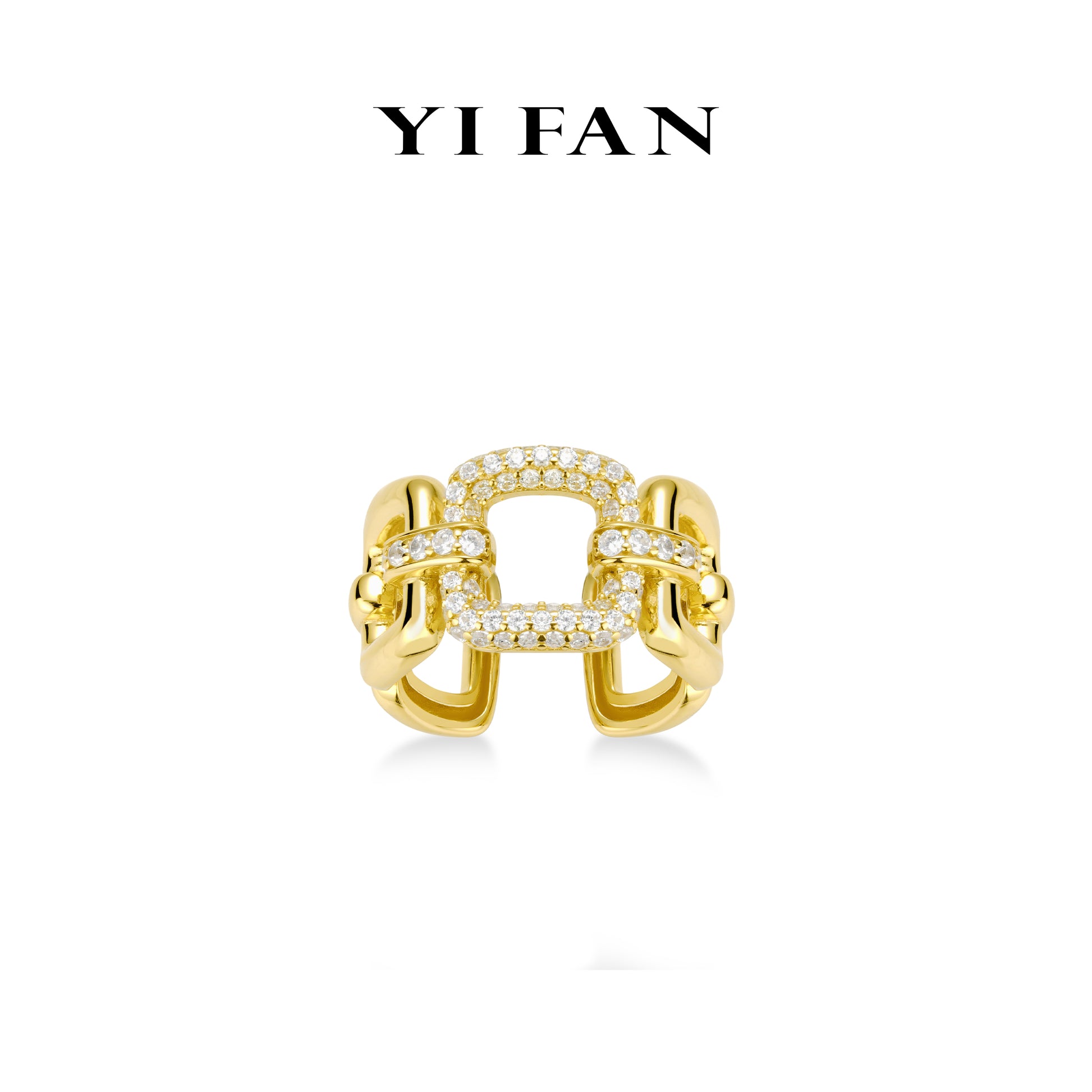 Golden time collection: Modern "Hollowed Loop by Loop" Wide Open Ring (Unisex)