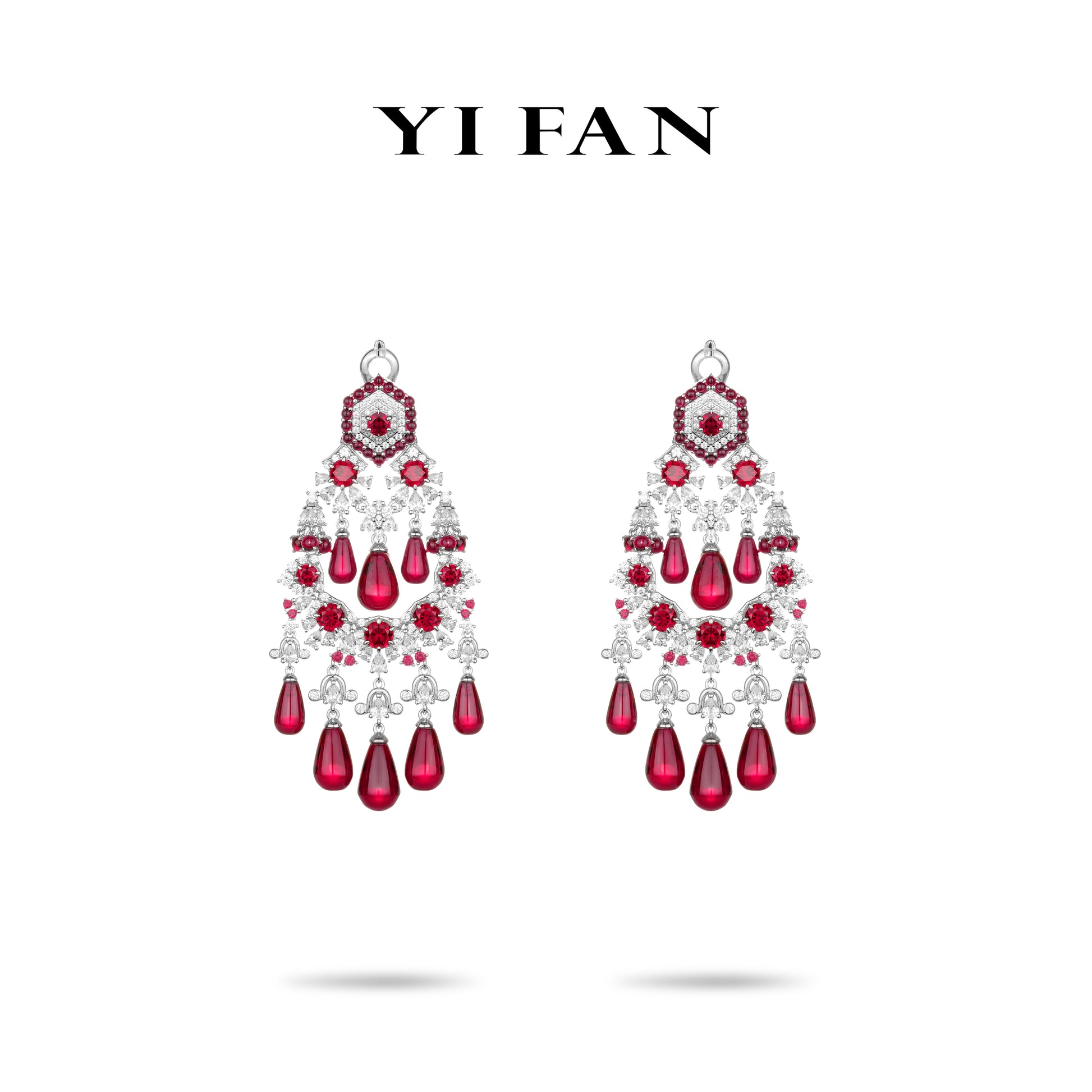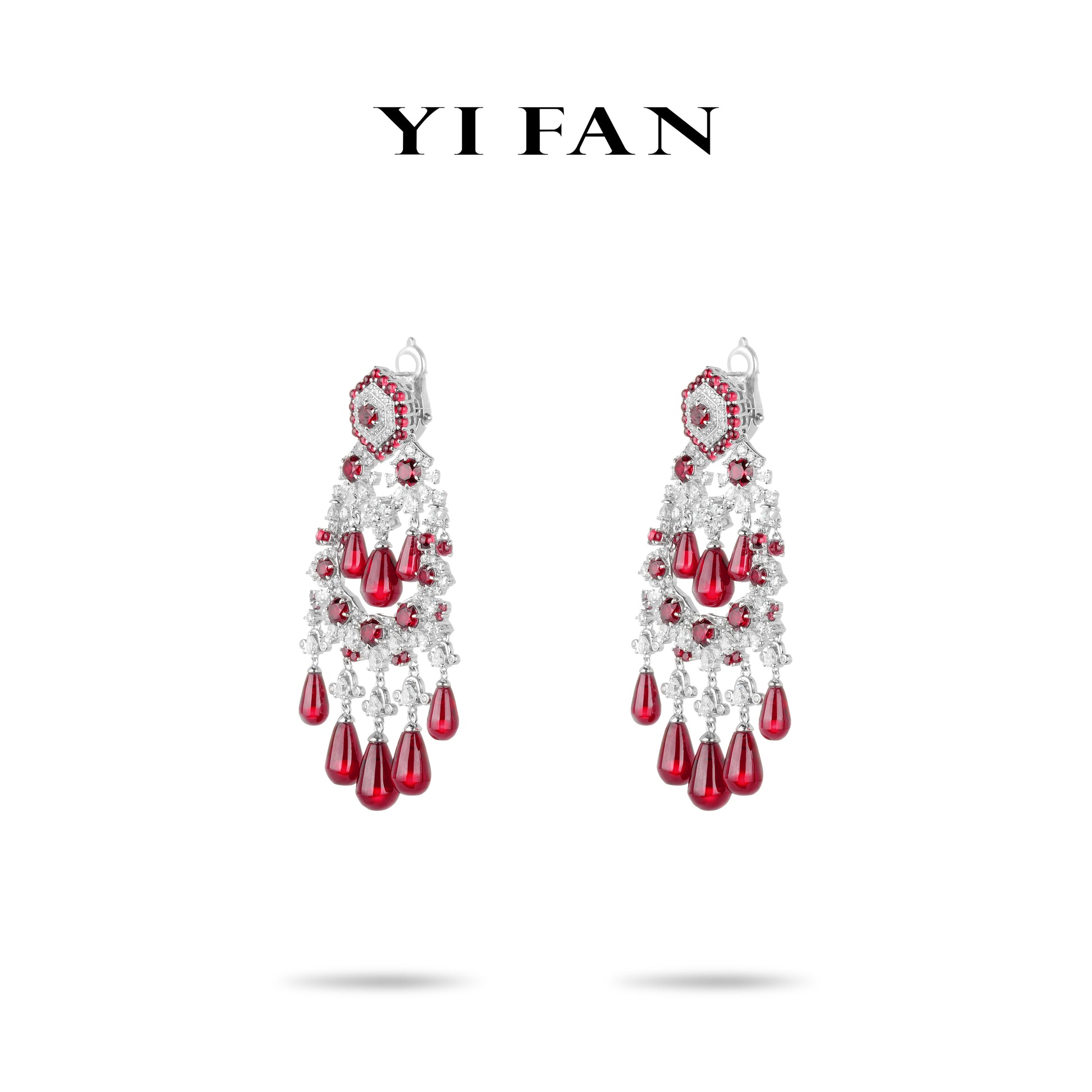 This Earrings is a perfect match with our Luxury "Crimson Elegance Royal Opulence" detailed Banquet Necklace. Every detail—from the precision of gem settings to the luxurious interplay of red and white—reflects Elsevier Jewelry & YIFAN’s dedication to craftsmanship, making it a statement piece for those who embrace timeless luxury with a bold, elegant flair.