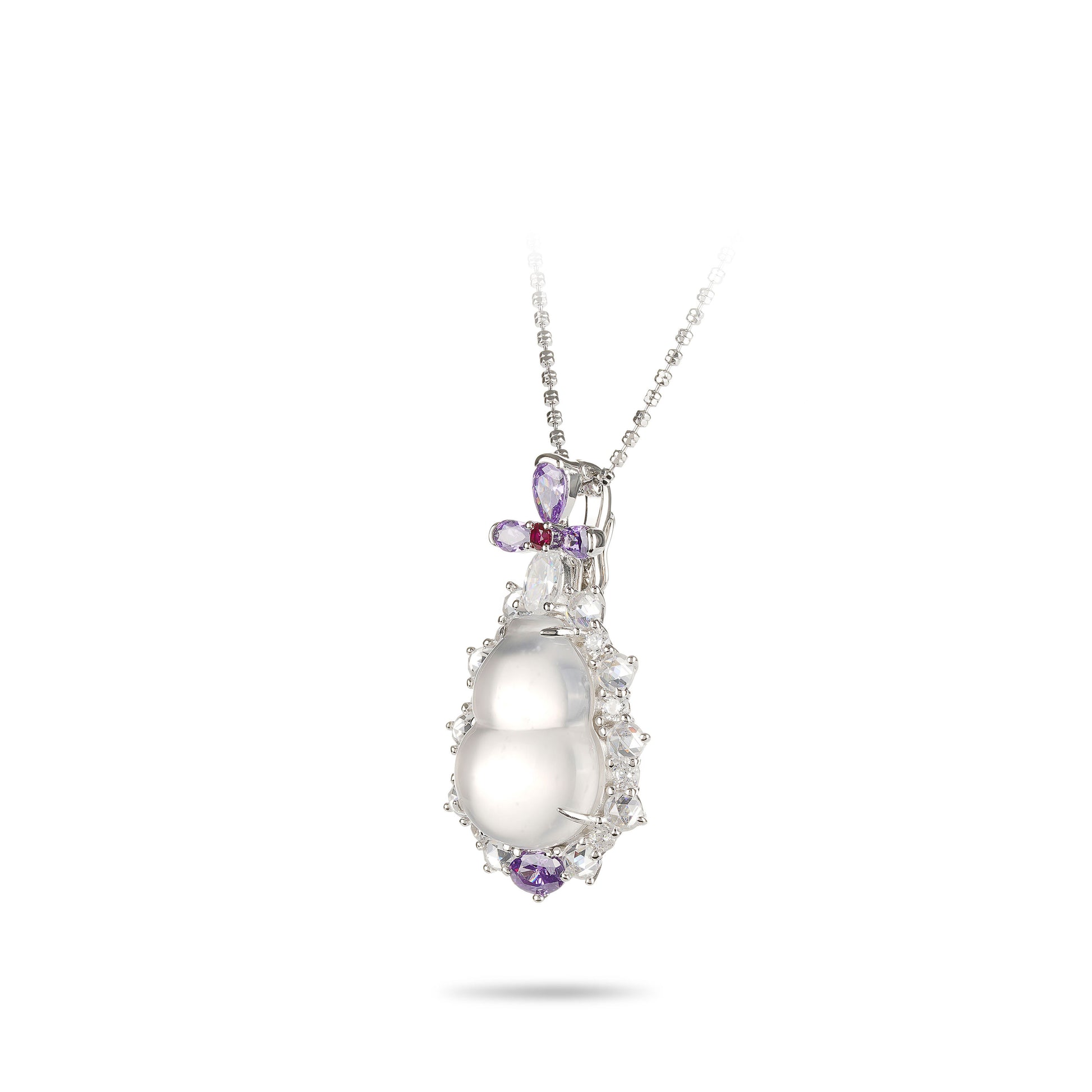 Crafted with Lab created artificial diamonds and Icy Jade in Bottle Gourd shape