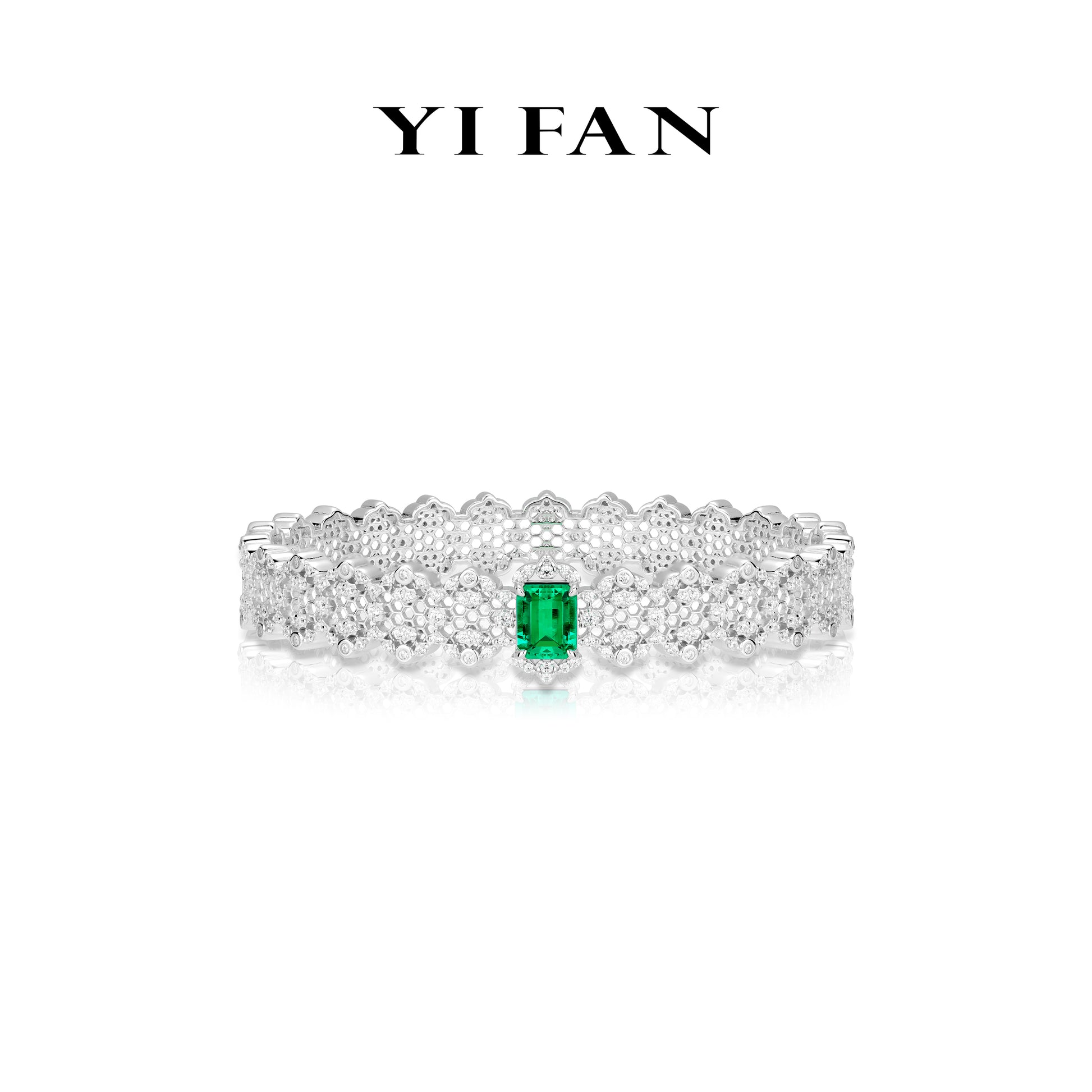 Lab Grown Emerald collection: Luxury "Verdant Enchantment Lace" exquisite Bracelet/Bangle
