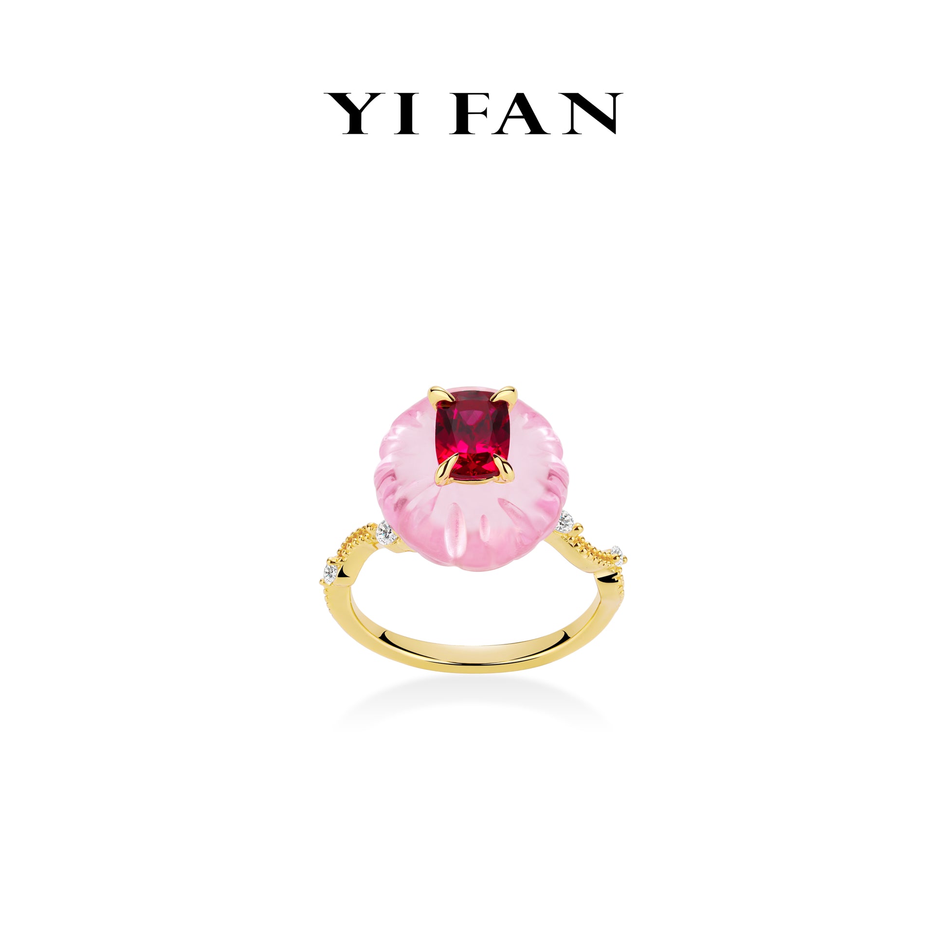 Ruby color collection: Modern "Pink Pumpkin & Red Cube" unique Golden Ring