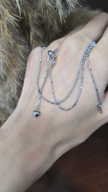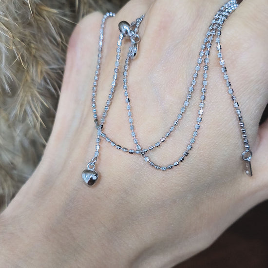 Handcrafted Drawn-Bead Sterling Silver Necklace with Adjustable Slider and Heart-shaped Tail