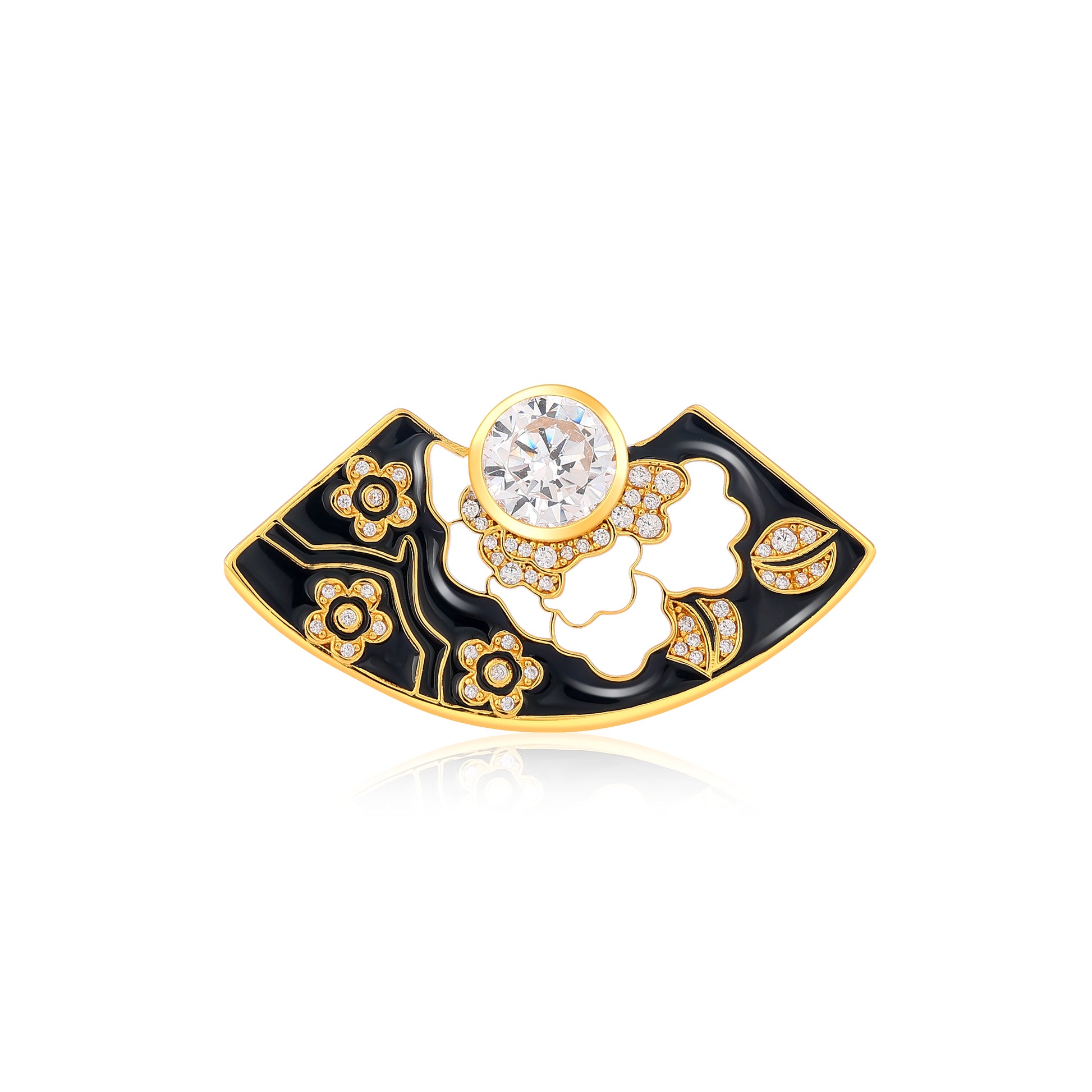 Handmade fashionable and versatile palace style hot-enamel fan Ring, with eco-friendly artificial diamond.