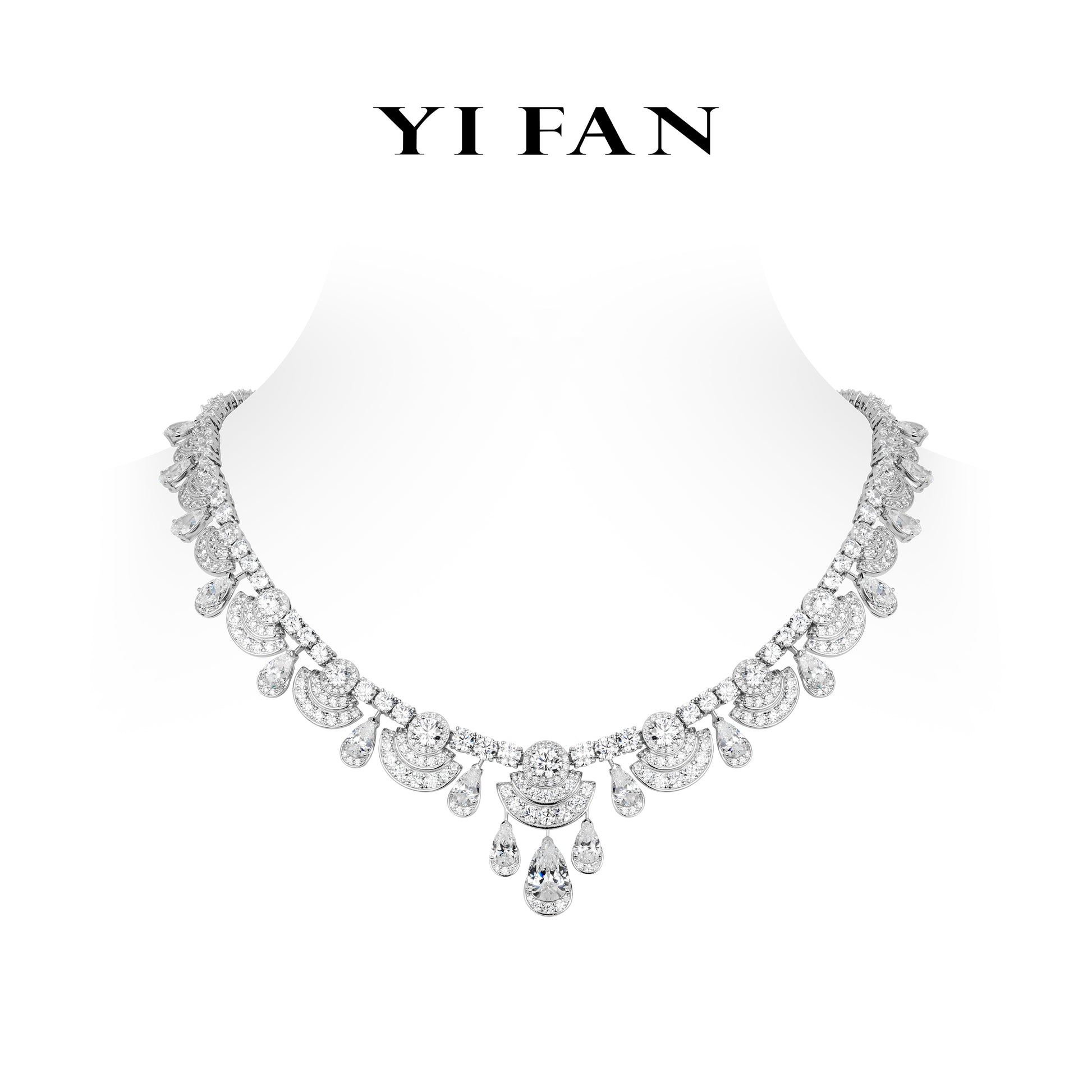 Inspired by the opulence of royal court jewelry, this necklace uses intricate diamond arrangements to recreate the grandeur of bygone eras. A tribute to timeless elegance, designed for those who want to wear a touch of aristocratic charm and make a statement of luxury.