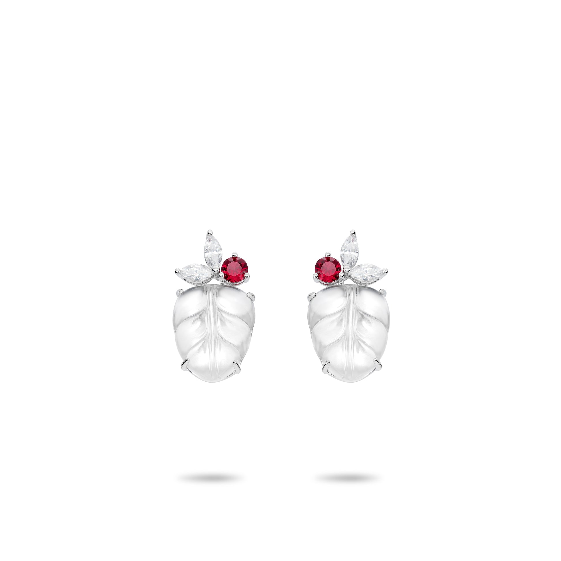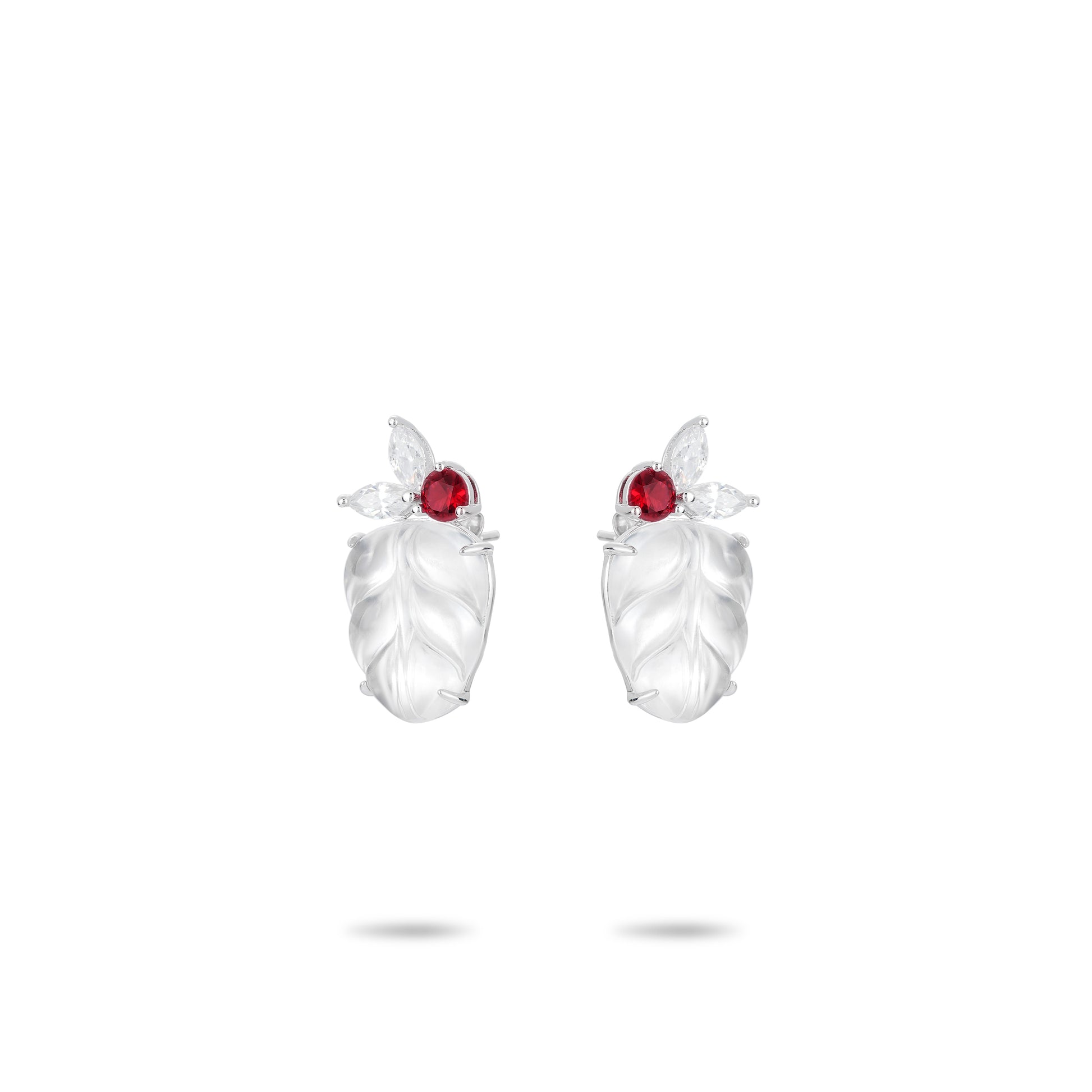 Luxury Icy Burmese Jade Red dot "Leaf" Earrings