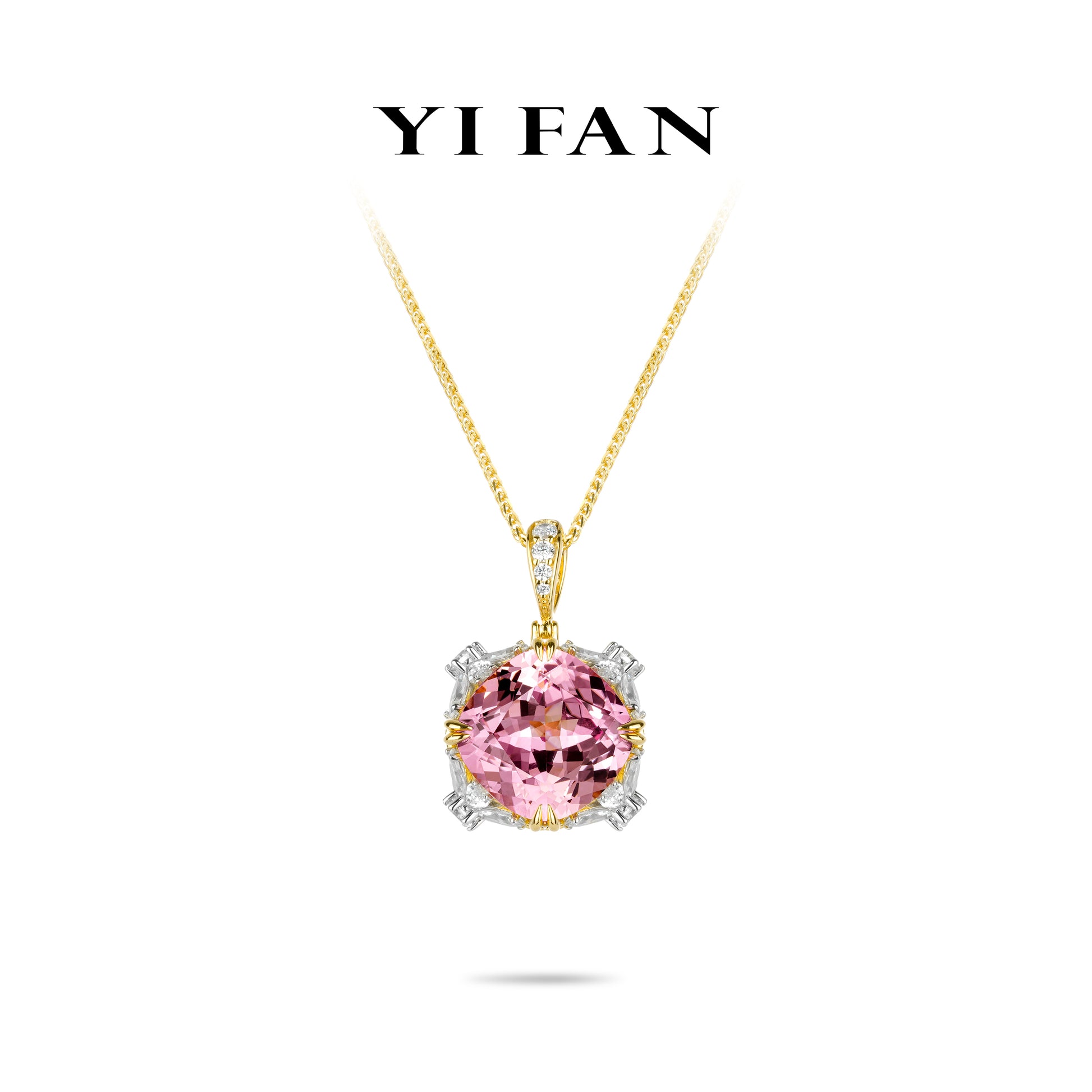 Morganite color collection: Golden “Lotus-Pink Glow Stardust” exquisite Pendant/Necklace
