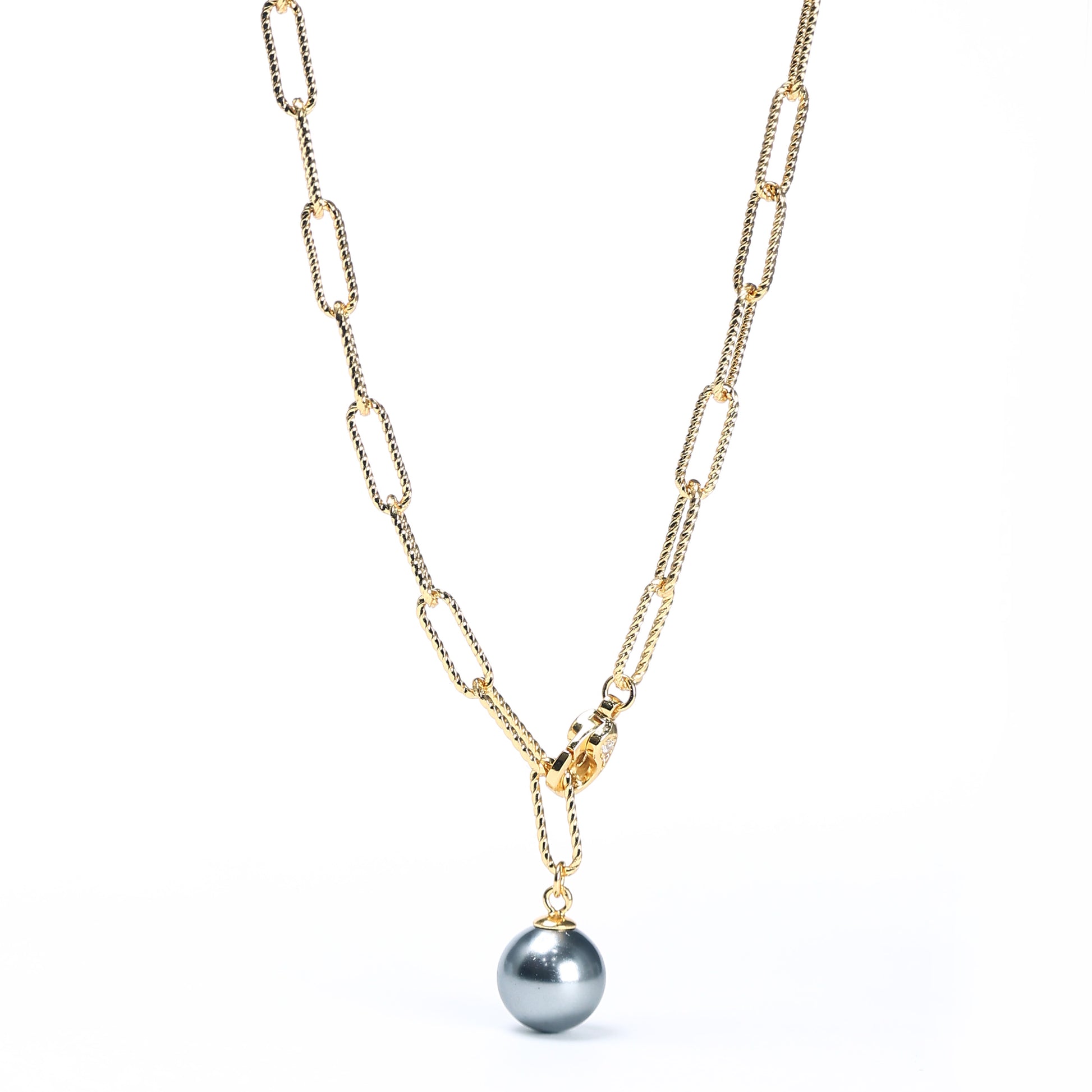 Multipurpose Grey Shell Pearl all linked with one another necklace, sterling silver. 70cm.