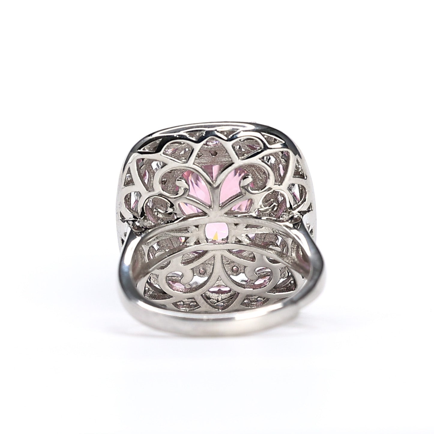 Only 1 piece Micro-setting Pink diamond color Lab created stones fancy ring, sterling silver.