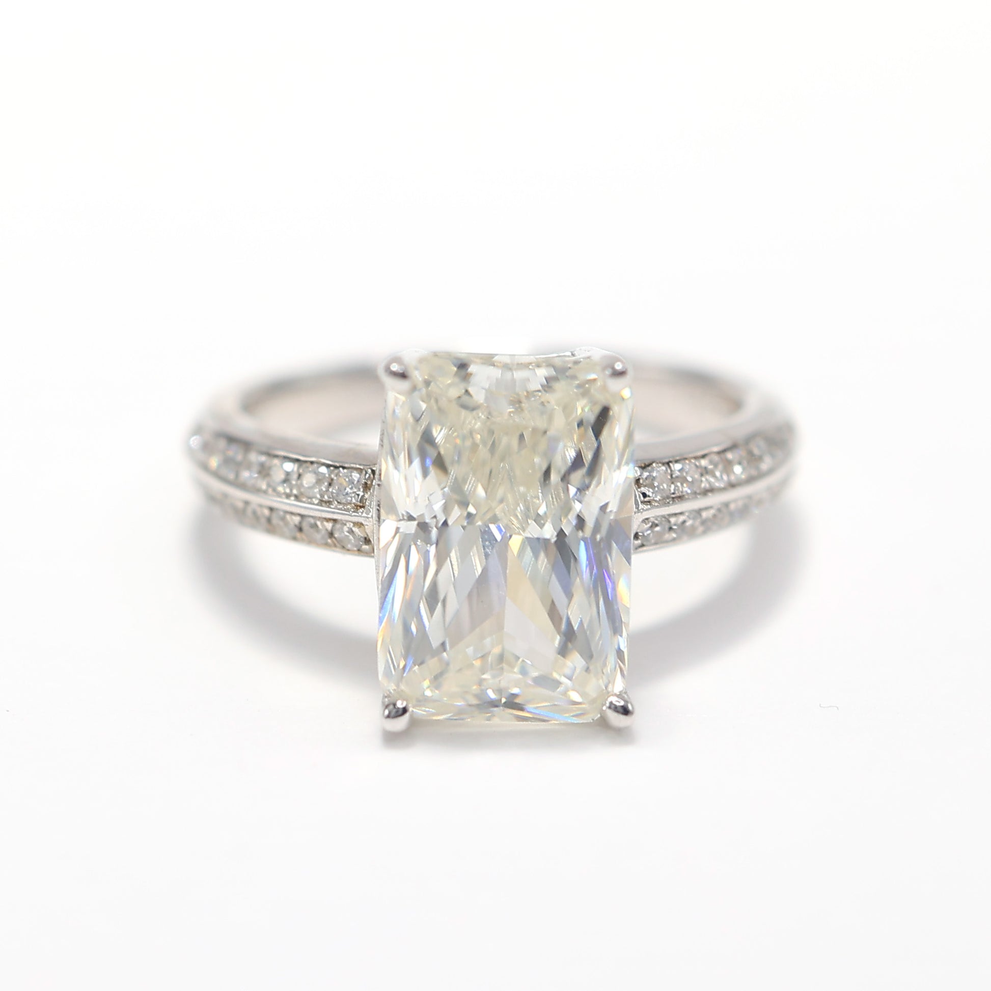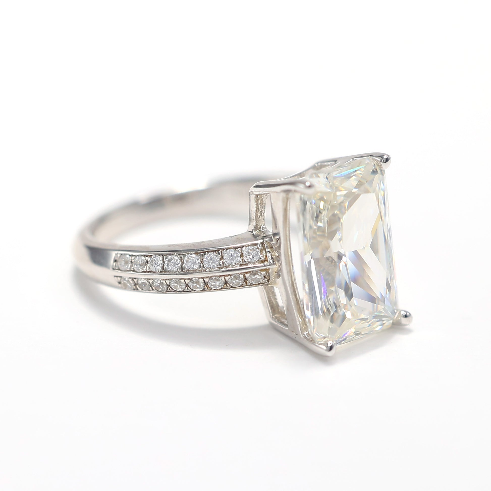 Micro setting G color lab created stones 4 prong Rectangular shape ring, sterling silver.