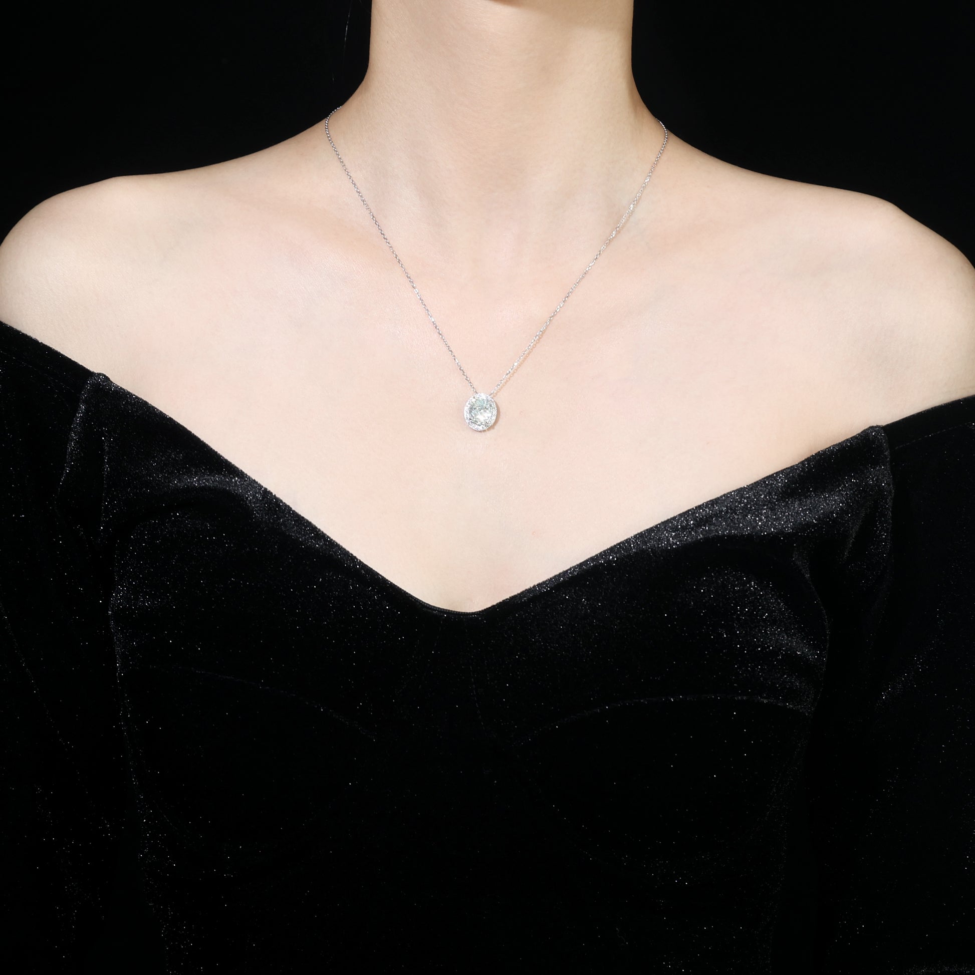 Paraiba color collection: Mint Blue Icy-cut Modern "Pigeon Egg Rock" detailed Necklace