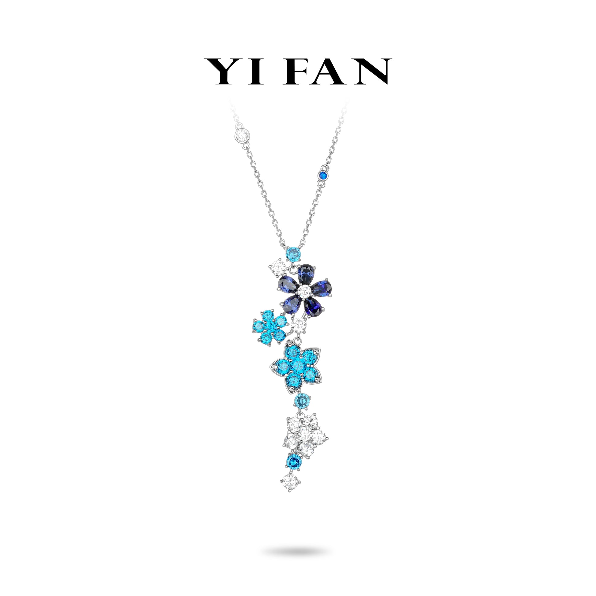 Paraíba-Sapphire Color collection: Modern "Love of Neon&Blue Flowers" exquisite Pendant/Necklace