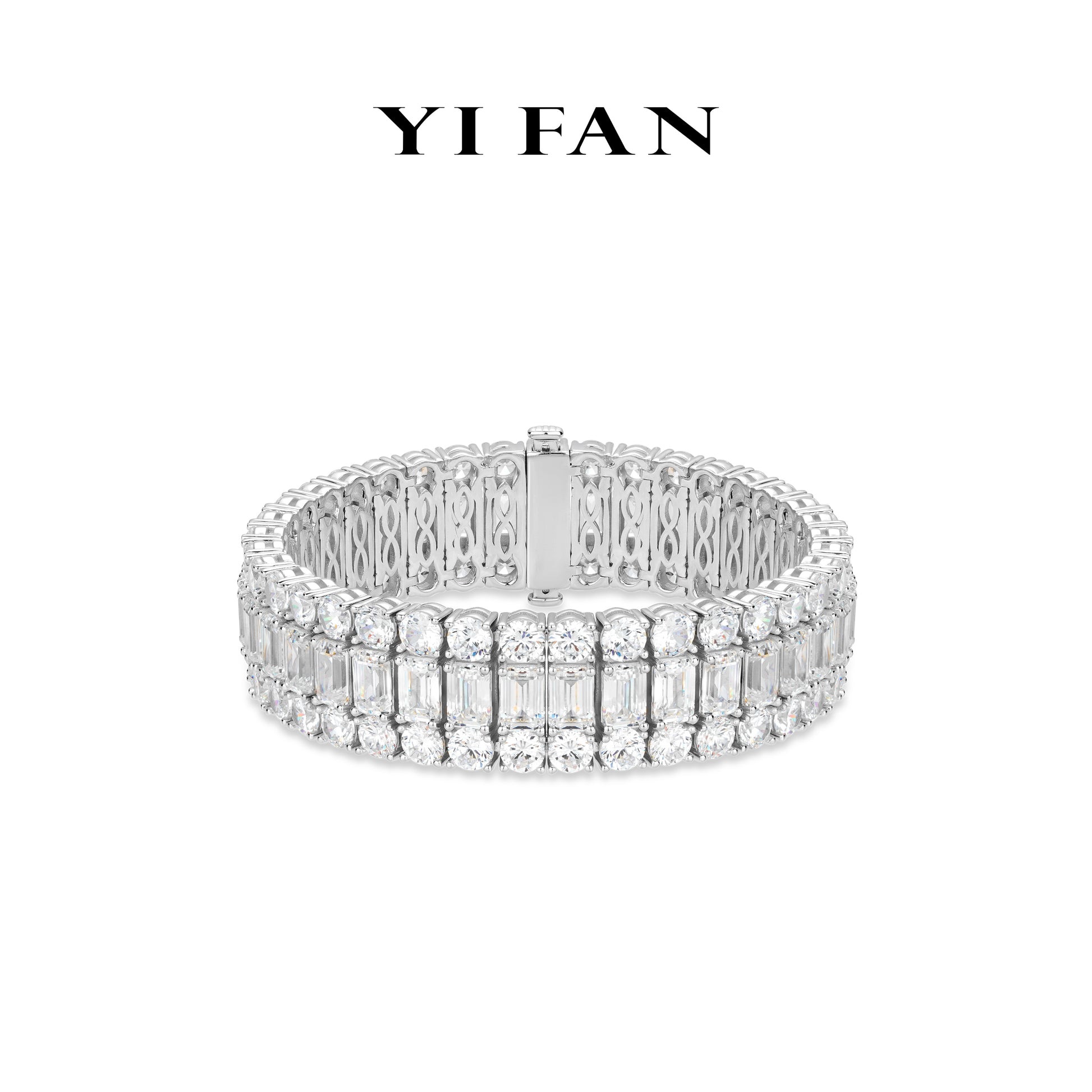 Pre-order High Jewelry collection: Luxury "Threesome Brilliant & Emerald-cut Ice Rocks" detailed Tennis Bracelet