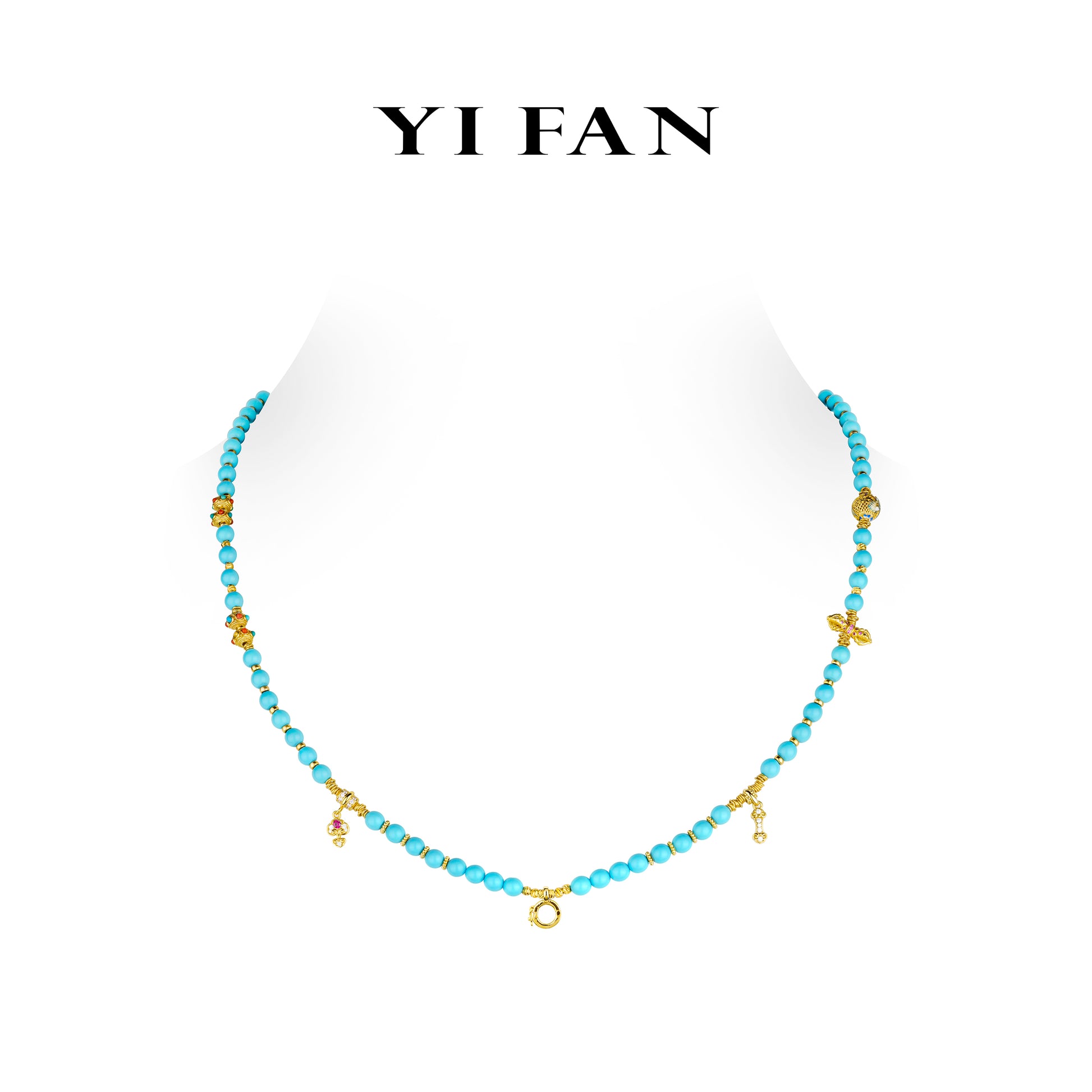 Pre-order High Jewelry collection: Multi-purpose "Golden Treasures with turquoise beads" detailed Long Necklace (with adapter)
