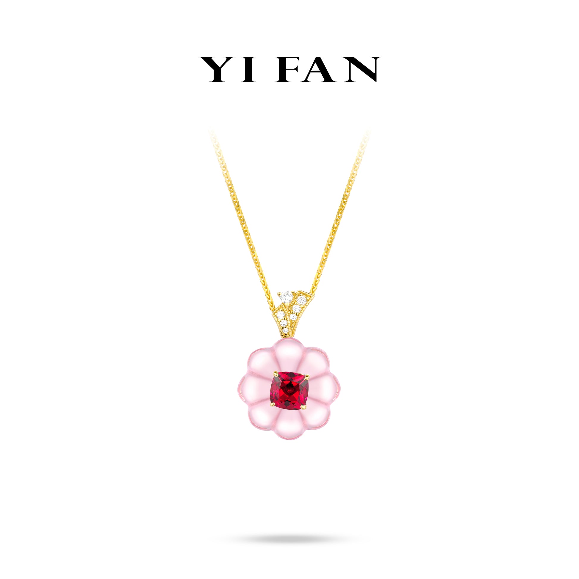 Modern "Pink Flower & Red Cube" unique Golden Pendant/Necklace。