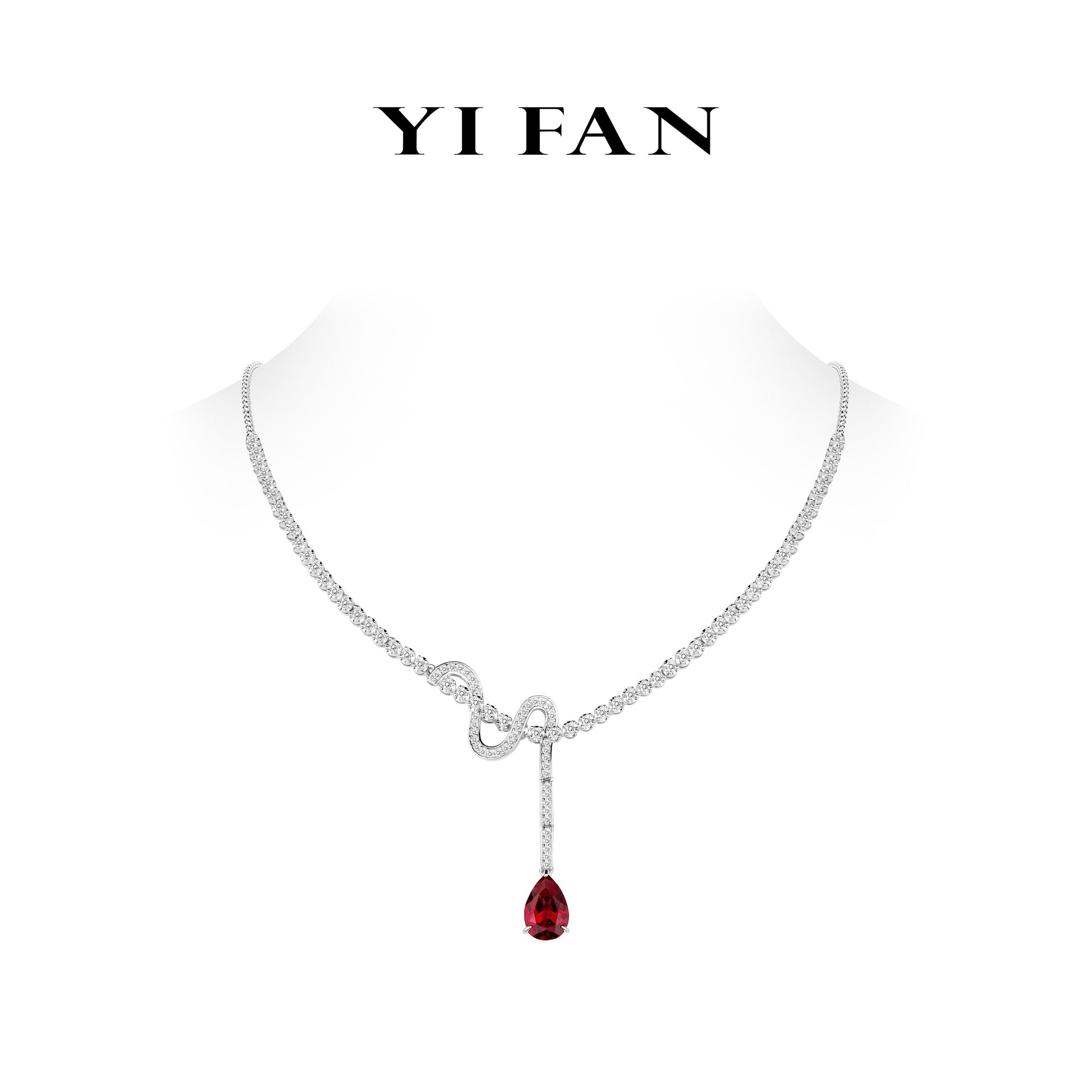 Modern "Snake inspiration Red Water-droplet" Y shape Tennis Necklace.