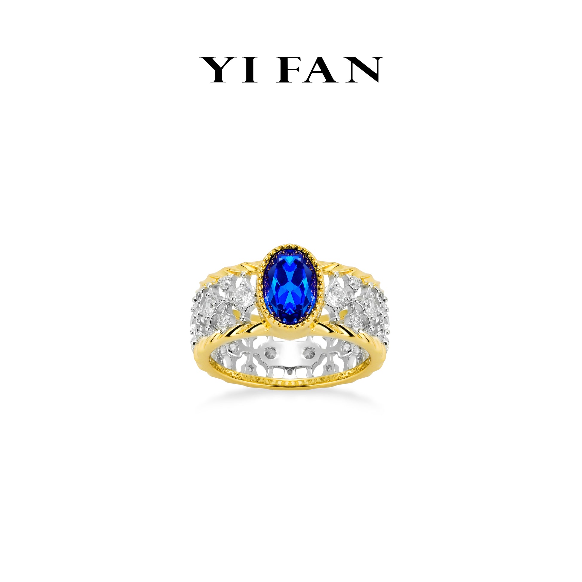 Sapphire color collection: Golden edge "Vibrant Blue Starry Sea" Wide band Lace Ring