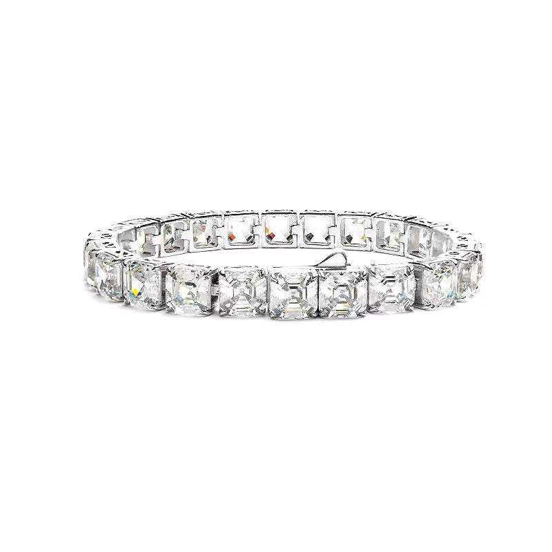 Wedding collection: G color Lab created stones Asscher-cut Tennis bracelet, sterling silver