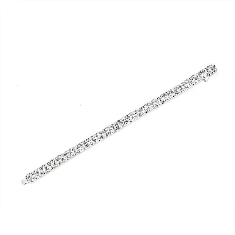 G color Lab created stones Asscher-cut Tennis bracelet, sterling silver.