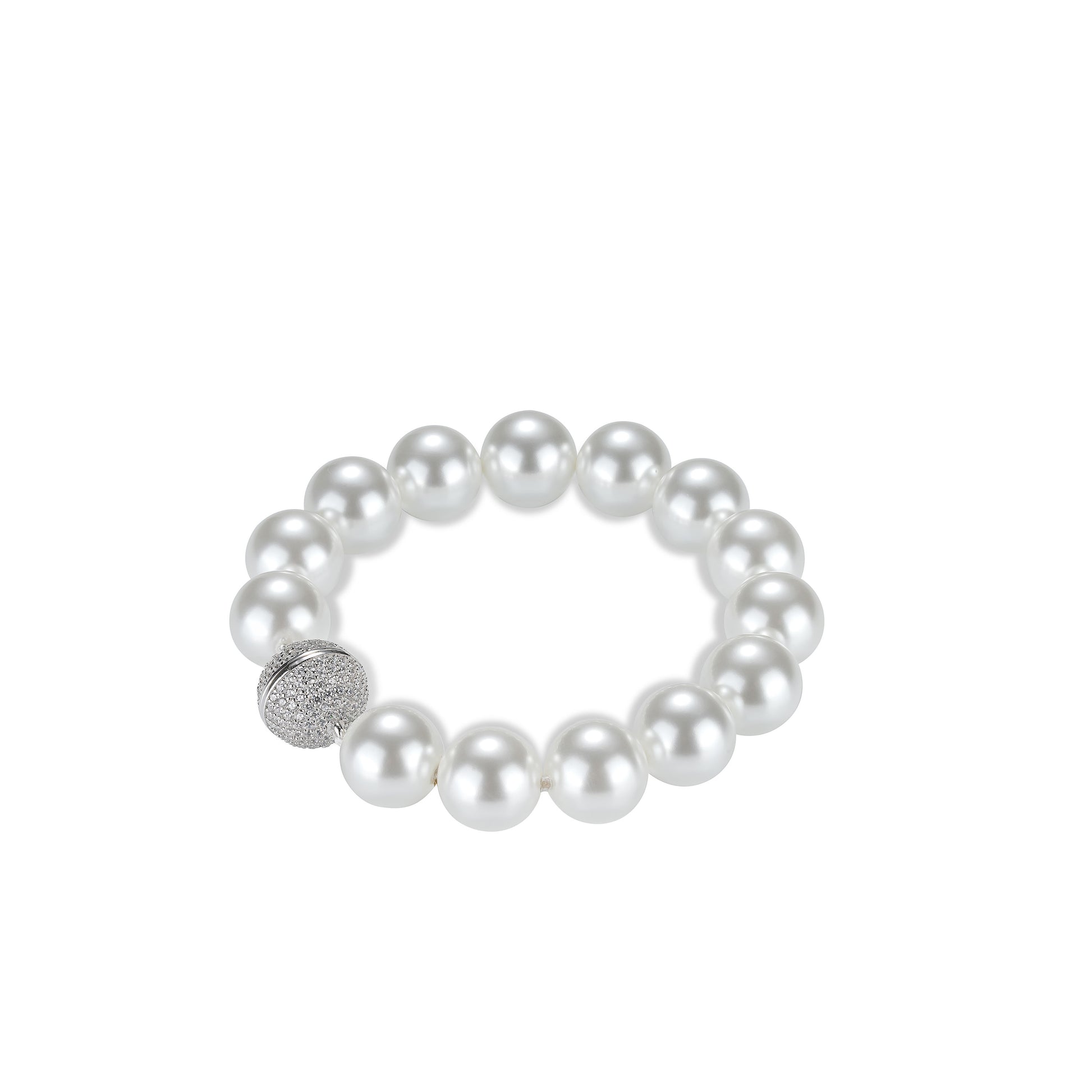 Featuring with Lustrous high quality Shell Pearls in white tone. with ball clasp set with eco-friendly artificial diamonds, in sterling silver.